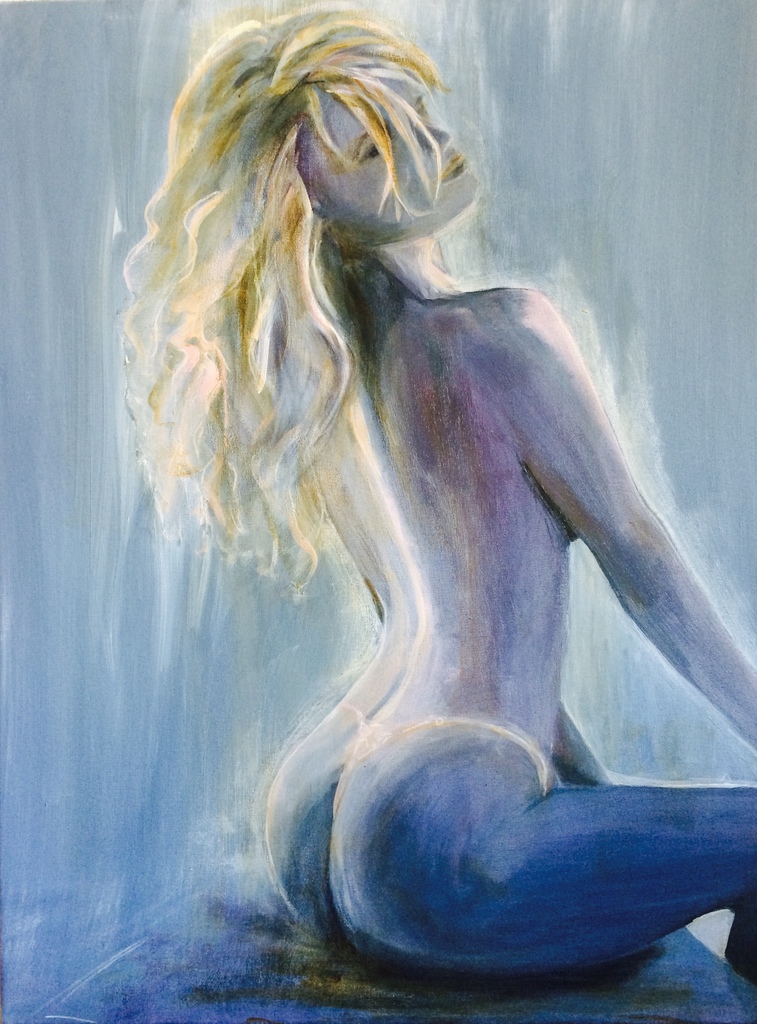 Blauw Vrouw Naakt Blue Model Woman Nude Rug Female Blond Haar Hair Zittend Zwoel Zitten Cool Naked Koel She Verleidelijk String Sitting