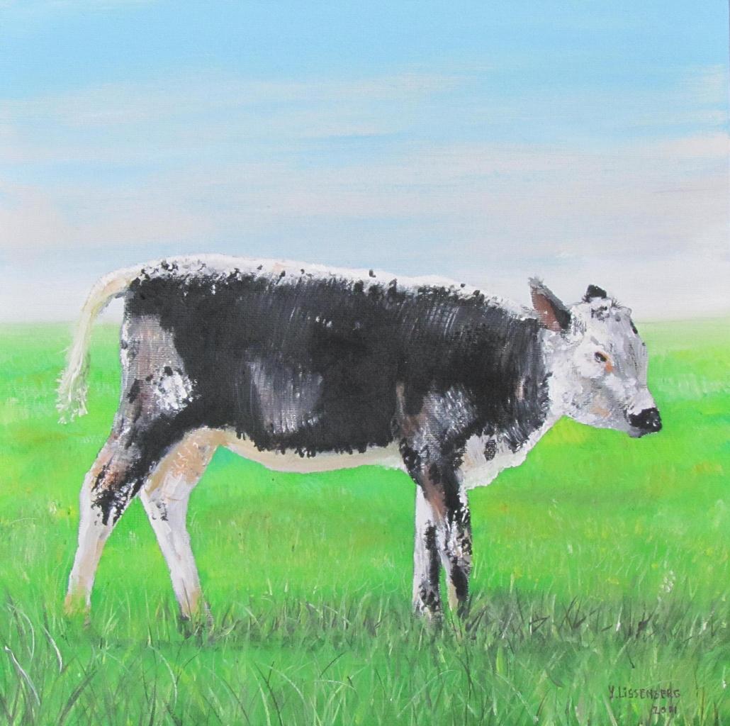 Wit Zwart Landschap Groen Koe Realistisch Olieverf Koeien Weiland Kalf Weide