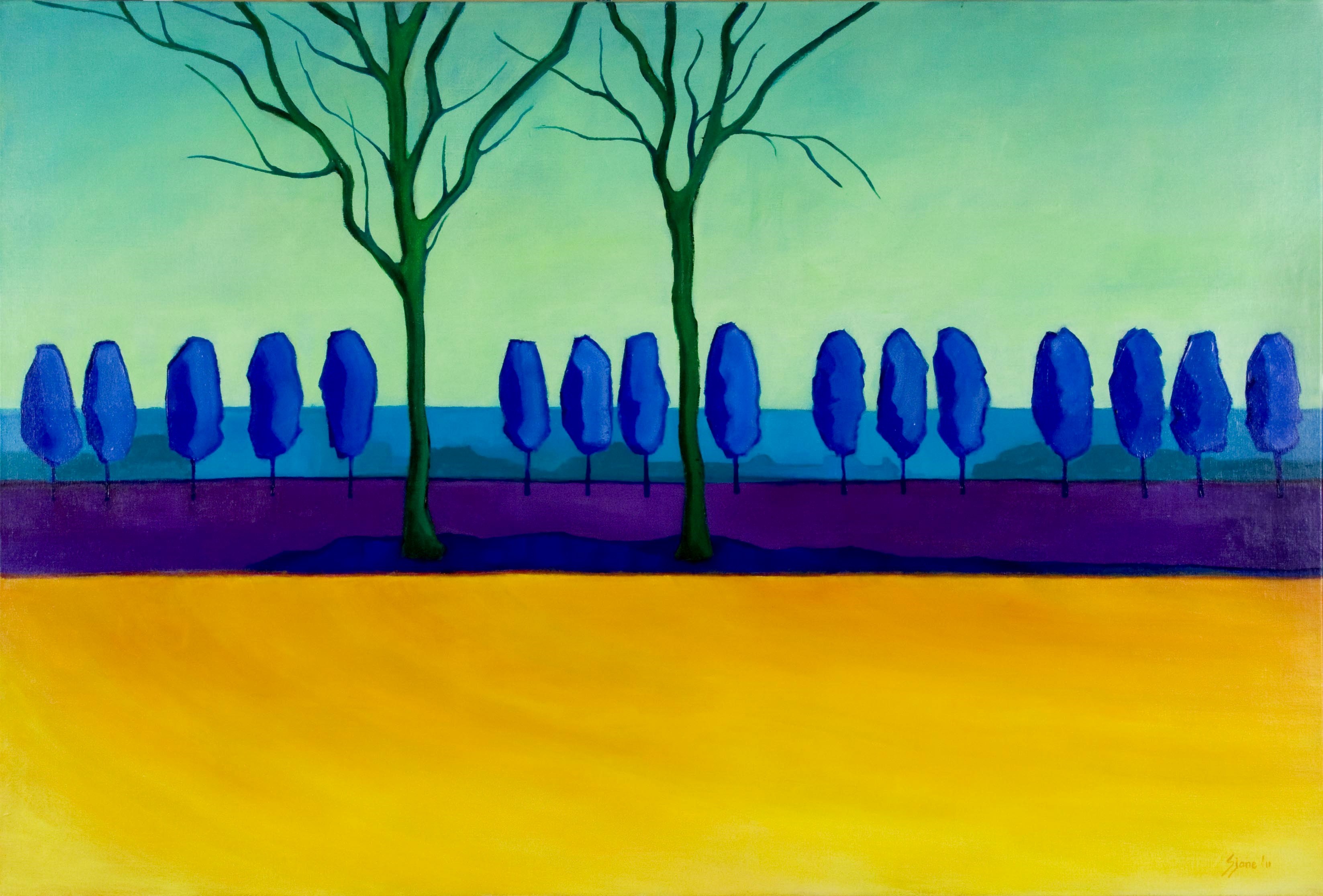 Het landschap is mijn grootste inspiratiebron. In de zomer heb ik veel buiten geschilderd. Mijn landschappen zijn kleurrijk en sterk geabstraheerd. Op het moment zijn mijn landschappen abstract.
