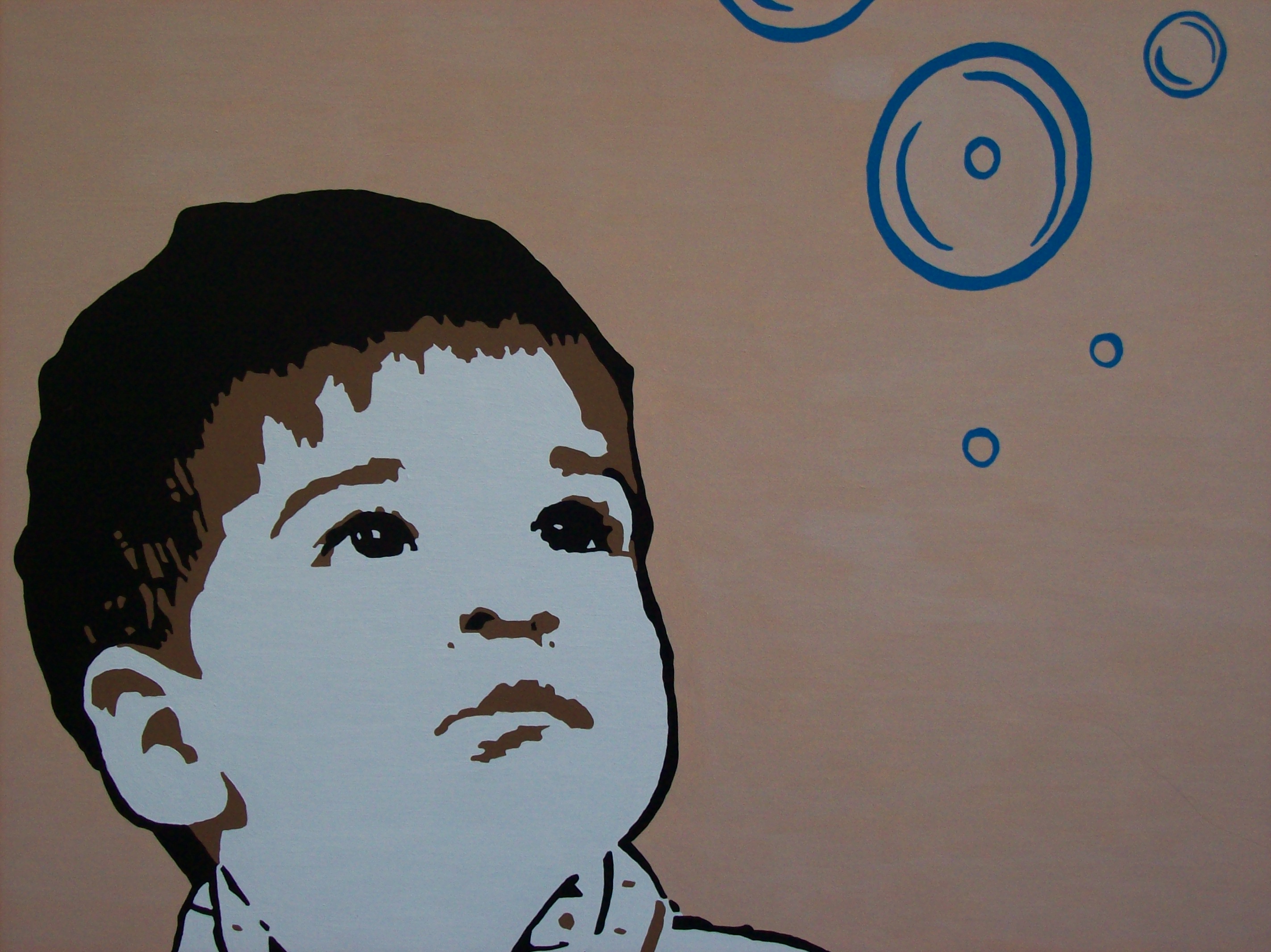 Blauw Goud Kind Portret Bruin Onschuld Jongetje Bellen