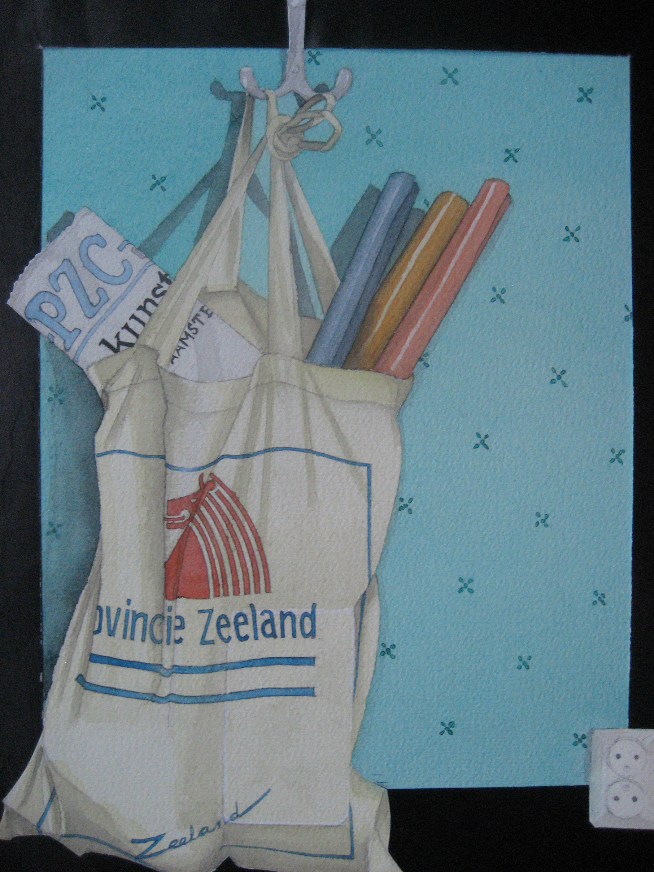 Aquarel Stilleven Tas Zeeland Linnen Zeeuwse Pzc Kapstok Subtiel