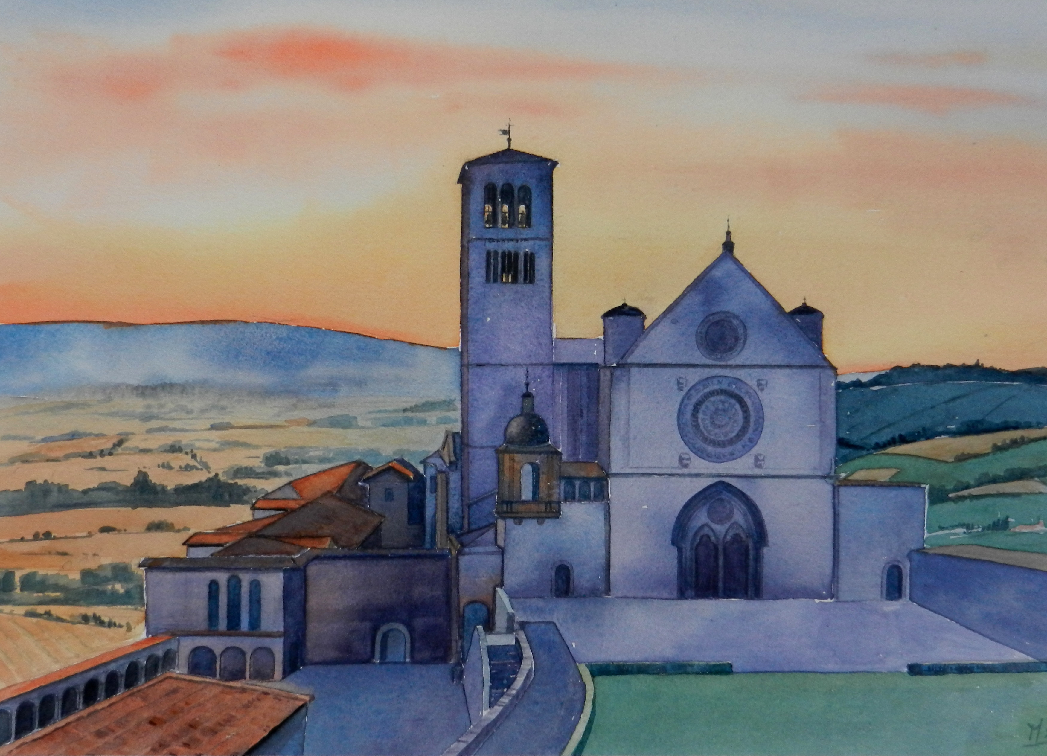 aquarel, schilderij, kerk, architectuur, naturalistisch, realistisch, landschap50