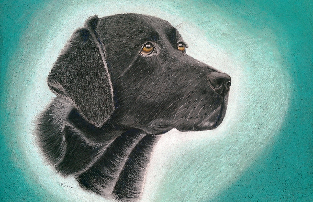 Zwart Pastel Hond Labrador Softpastel