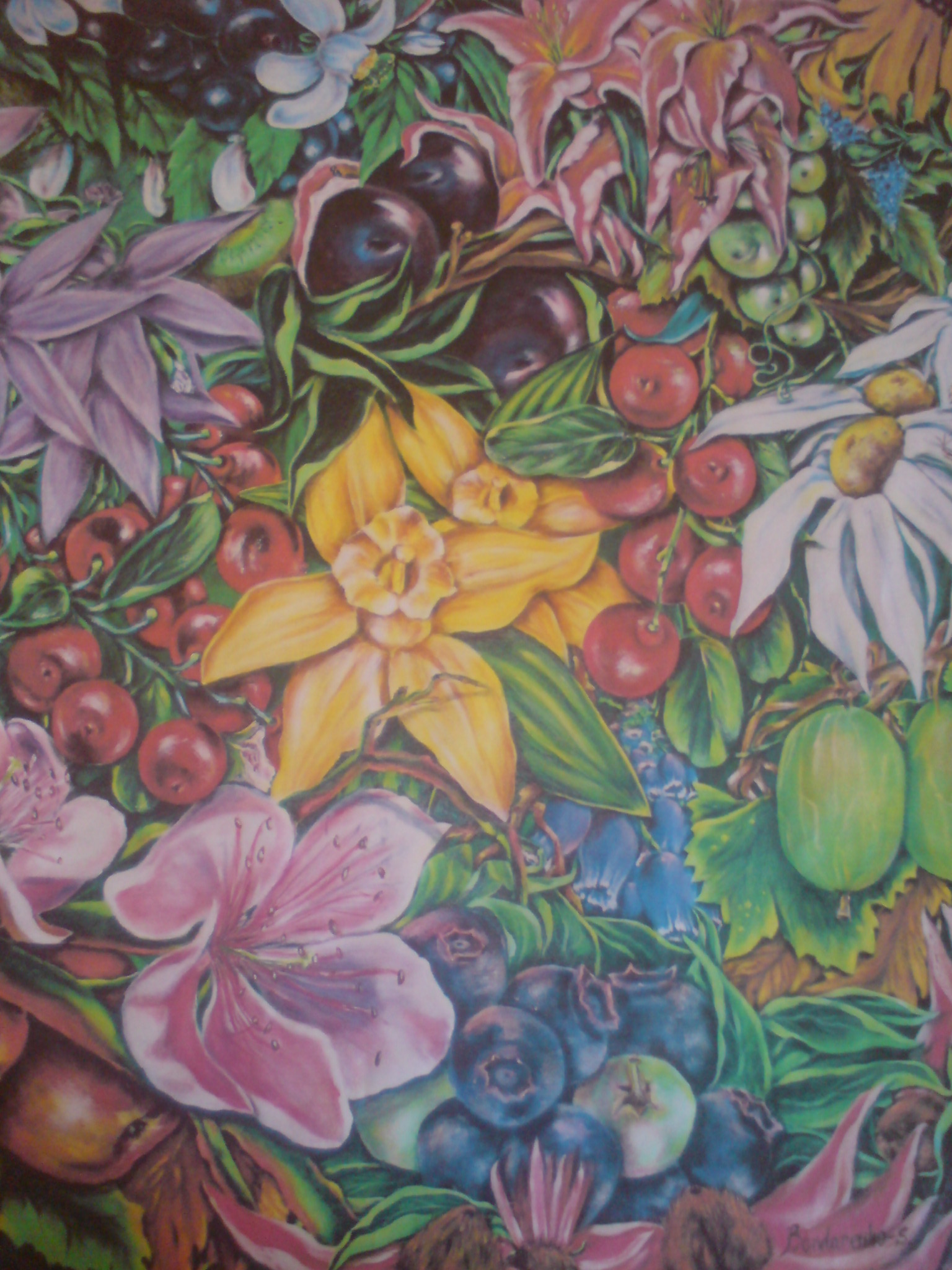 een heel origineel schilderij gevuld met planten