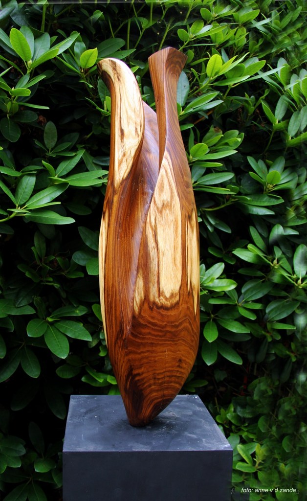 Ik heb mijn hele leven belangstelling voor hout gehad. Tot aan mijn pensionering als directeur van een ziekenhuis kwam dit tot uitdrukking in het maken van meubels. Nu, sinds 2002 beeldhouw ik,nagenoeg uitsluitend, in hout. Ik werk instinctief. Dat wil zeggen dat ik geen vorm voor ogen heb wanneer ik de guts in het hout zet.