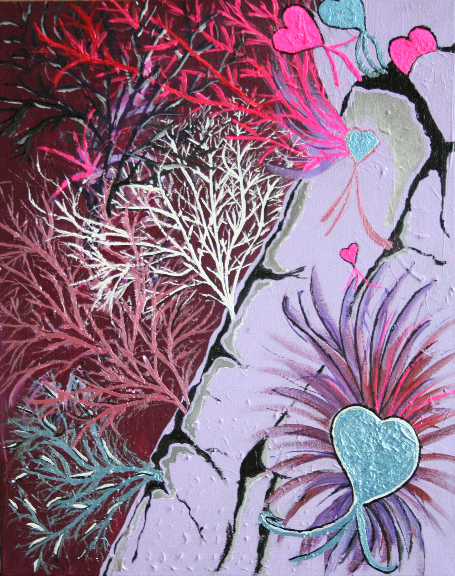 Roze Harten Dief Riet Helmers Acryl