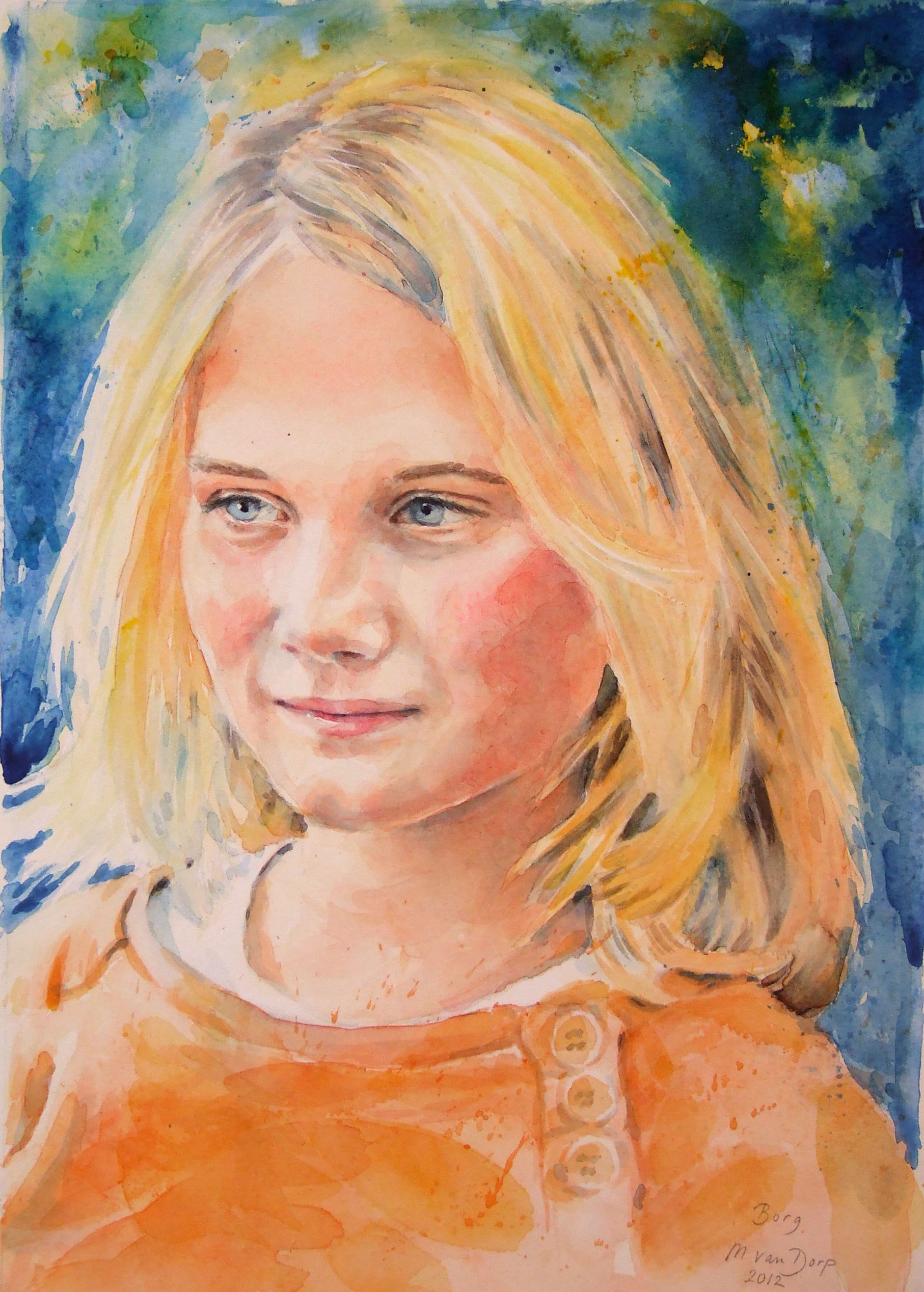 Portret Aquarel Opdracht Kleurrijk Kinderportret