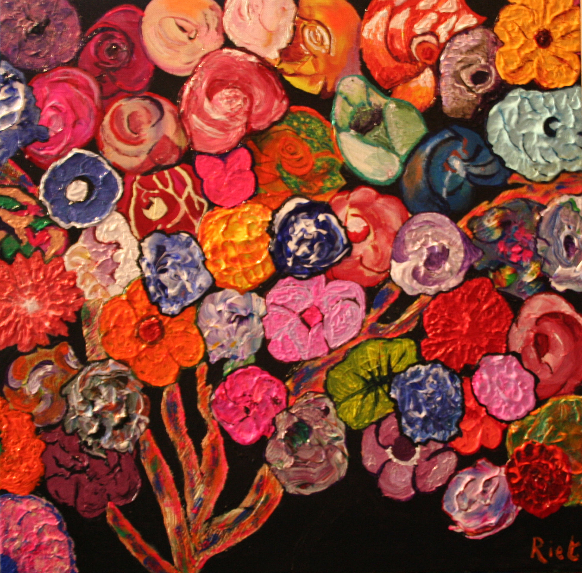Riet is geboren te Amsterdam in 1935.Daar heeft zij verschillende creatieve cursussen gevolgd. In 1999 verhuisde ze naar Workum in Friesland. Riet is daar de eerste vijf jaar bezig geweest met beeldhouwen. Daarna is zij schilderlessen gaan volgen bij verschillende kunstenaars. Momenteel schildert zij bij Marqueritte Clasquin en is daar op zoek naar een eigen stijl. Riet is autodidact en werkt voornamelijk met Acryl op doek.