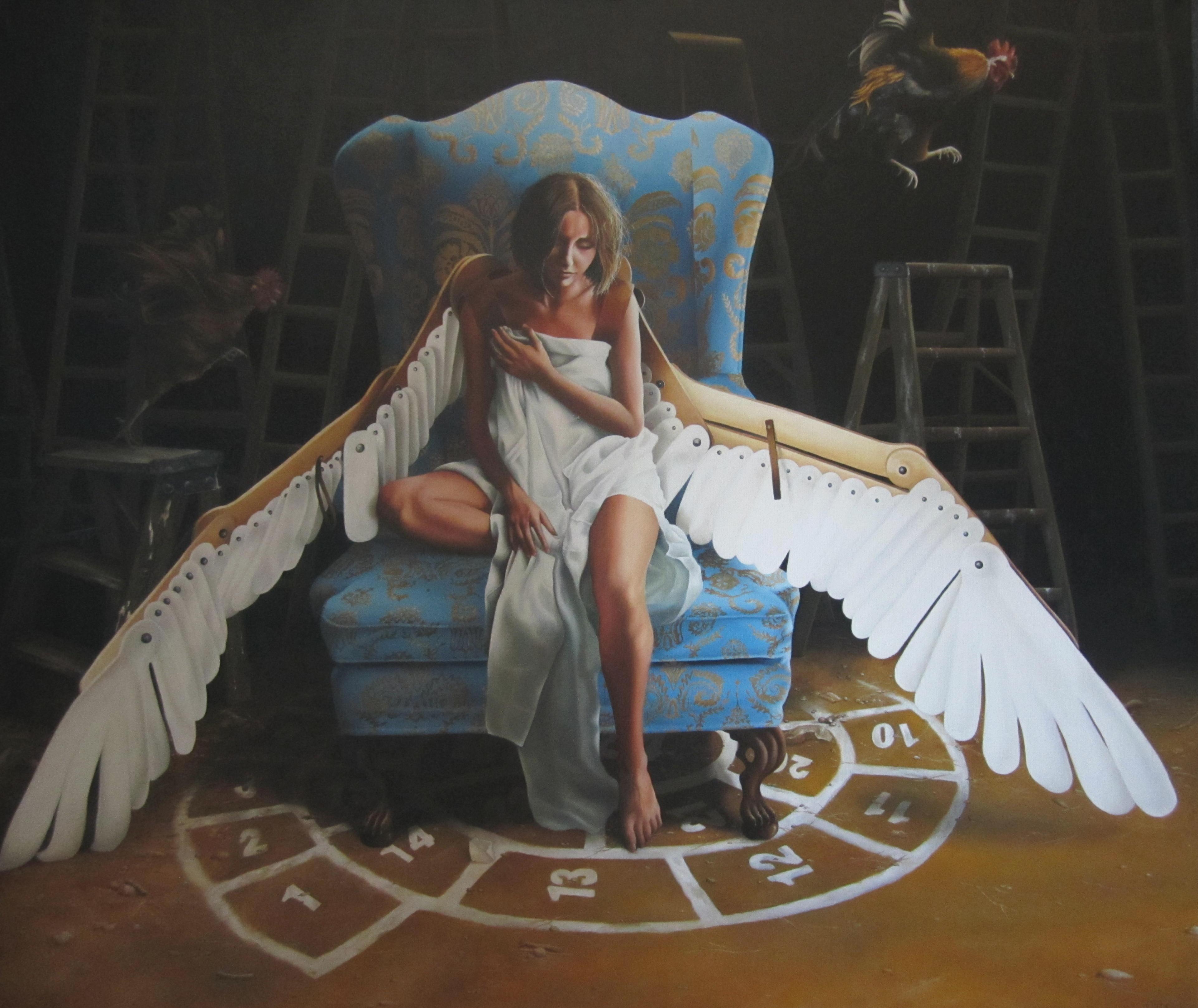 Wit Meisje Bruin Stoel Vleugels Girl White Brown Ladder Wings Turqoise Chair Steps