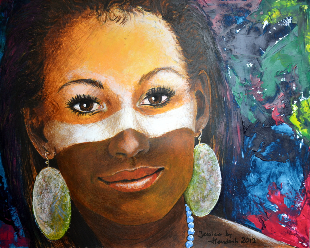 Art Female Acrylic Portrait Colored Woman Aruba Hendrik