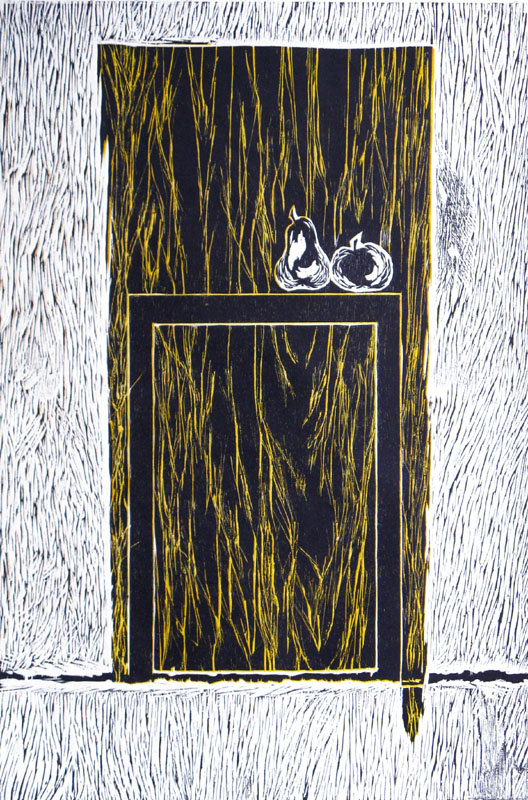Houtsnede communicatie geel zwart