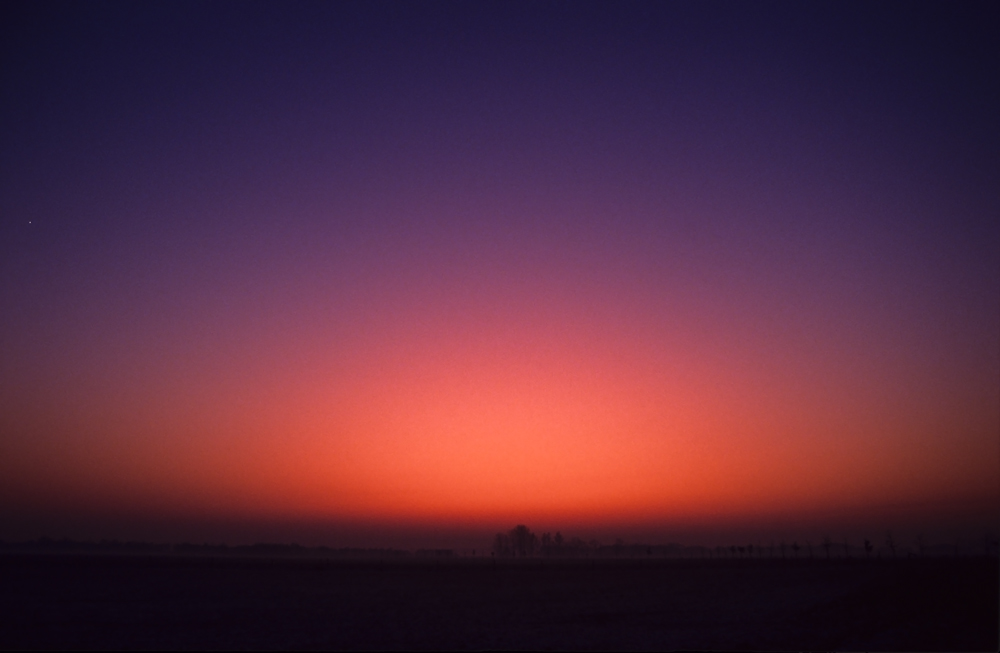Als bij strenge vorst in de winter de zon ondergaat. Dan is even na zonsondergang een oranje-rode koepel waar te nemen op de plek waar de zon is ondergegaan.