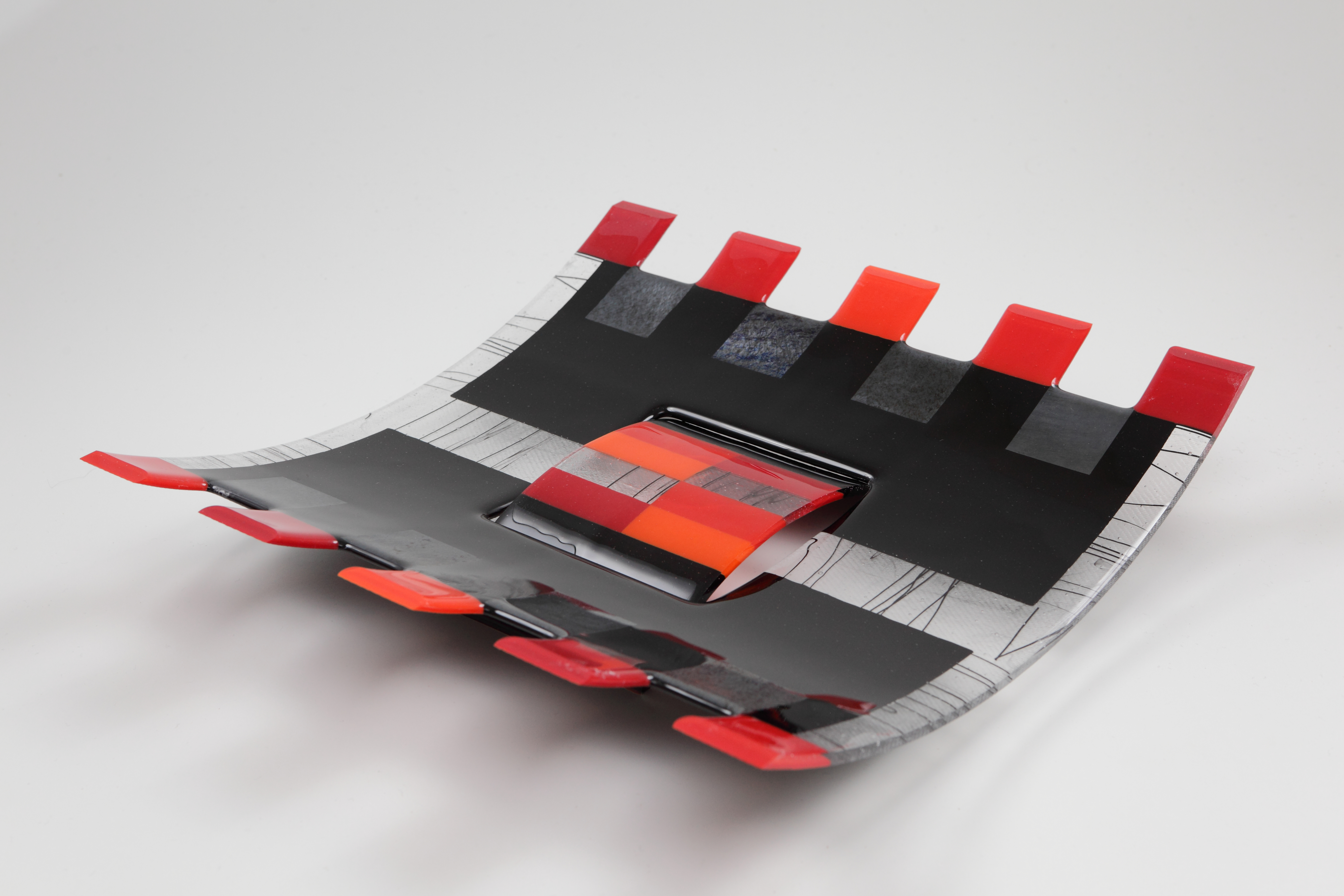 Schaal/sculptuur: fused, slumped en gepolijst Bullseye glas