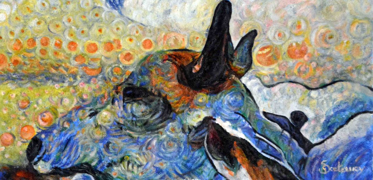 Greta Soetewey schildert haar impressie. Vooral dieren en mensen met hun tradities staan centraal op de foto's waarop ze haar schilderwerken baseert.