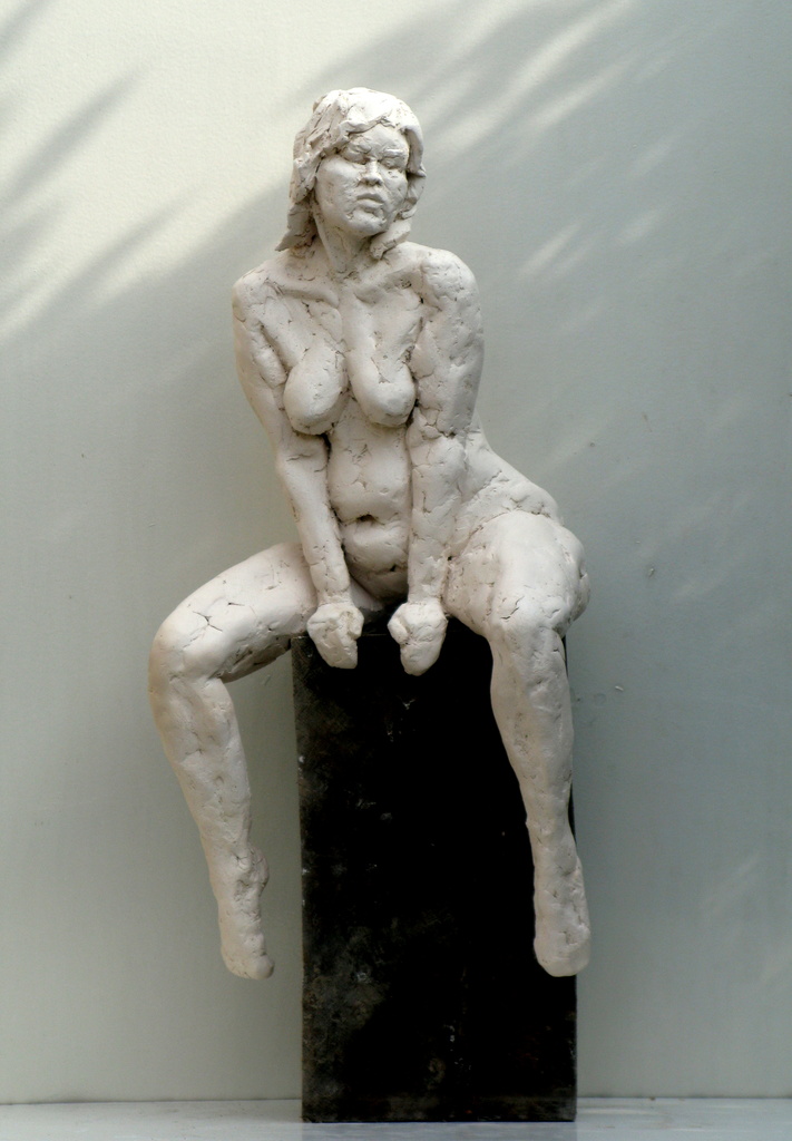 Vrouw Naakt Sokkel Klei Zittend Keramiek Zelfbewust Meijer Zeeuwsmeisje