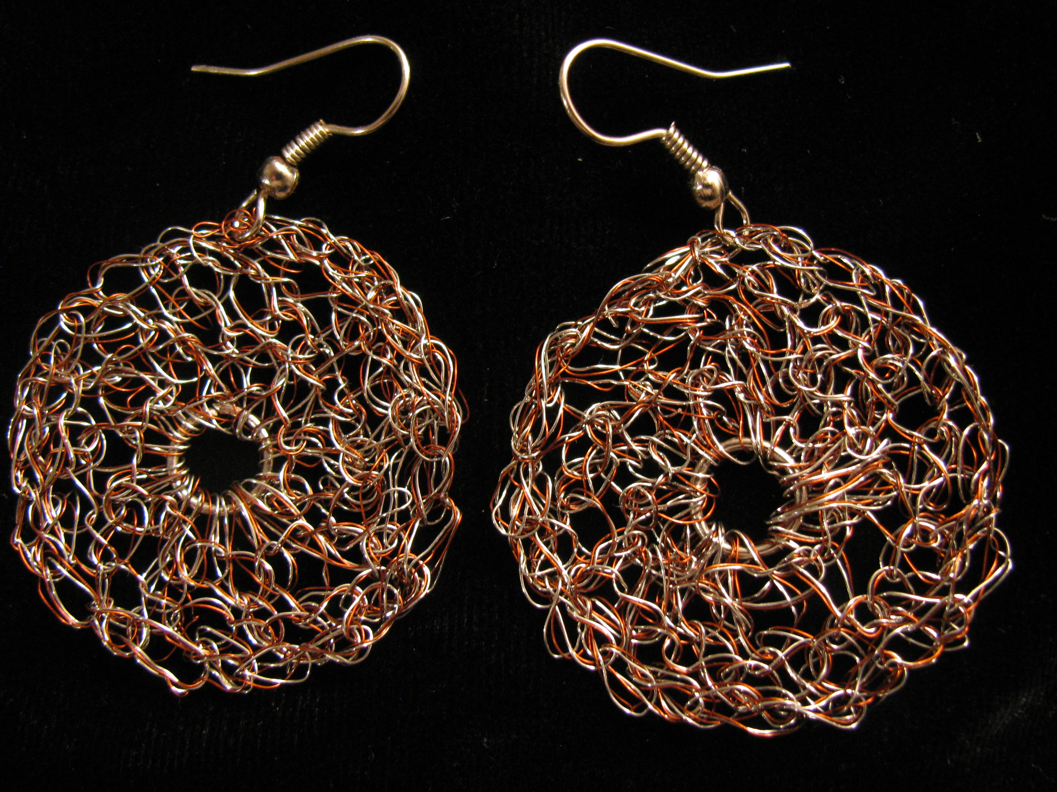 simple crochet earrings, copper and silver