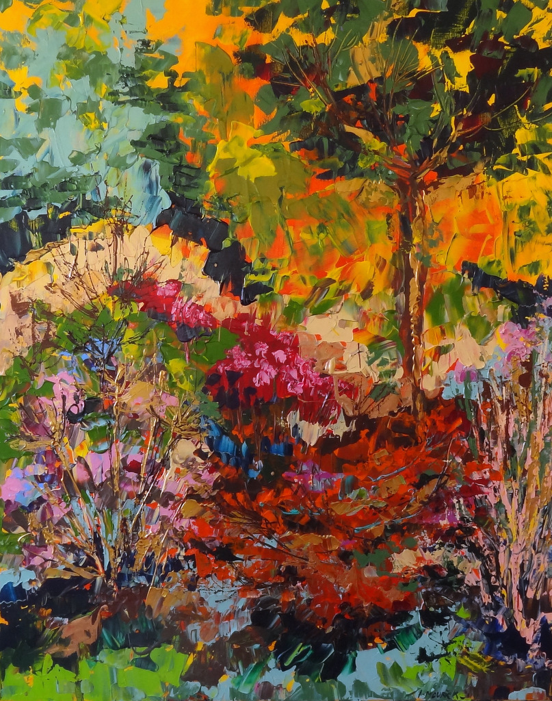 Herfst in mijn tuin Incl. houten baklijst in zilvergoud en zwart