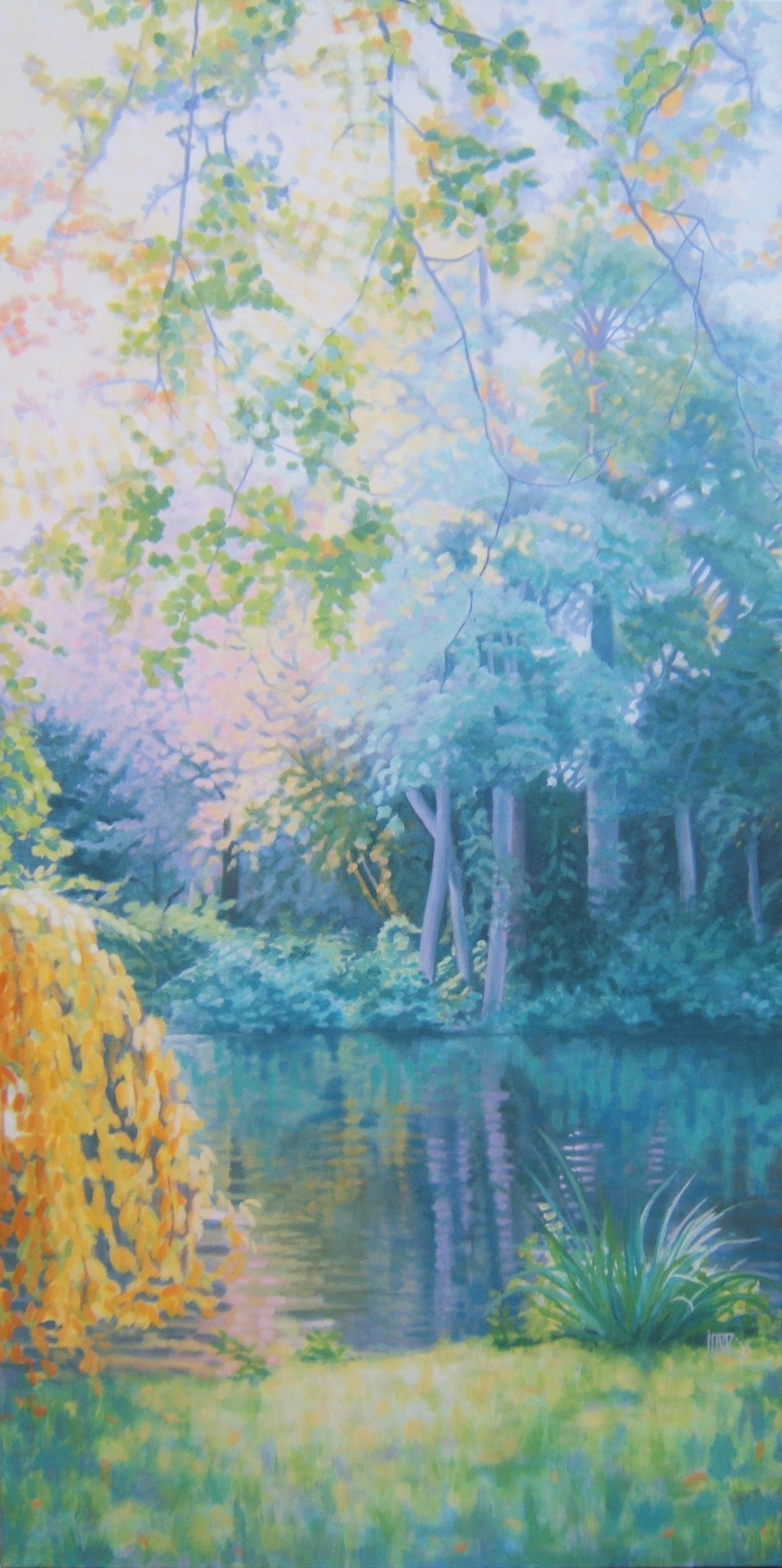 Zonlichtkleuren en de vochtige herfstlucht inspireerden mij om het nabij gelegen stadspark te schilderen.