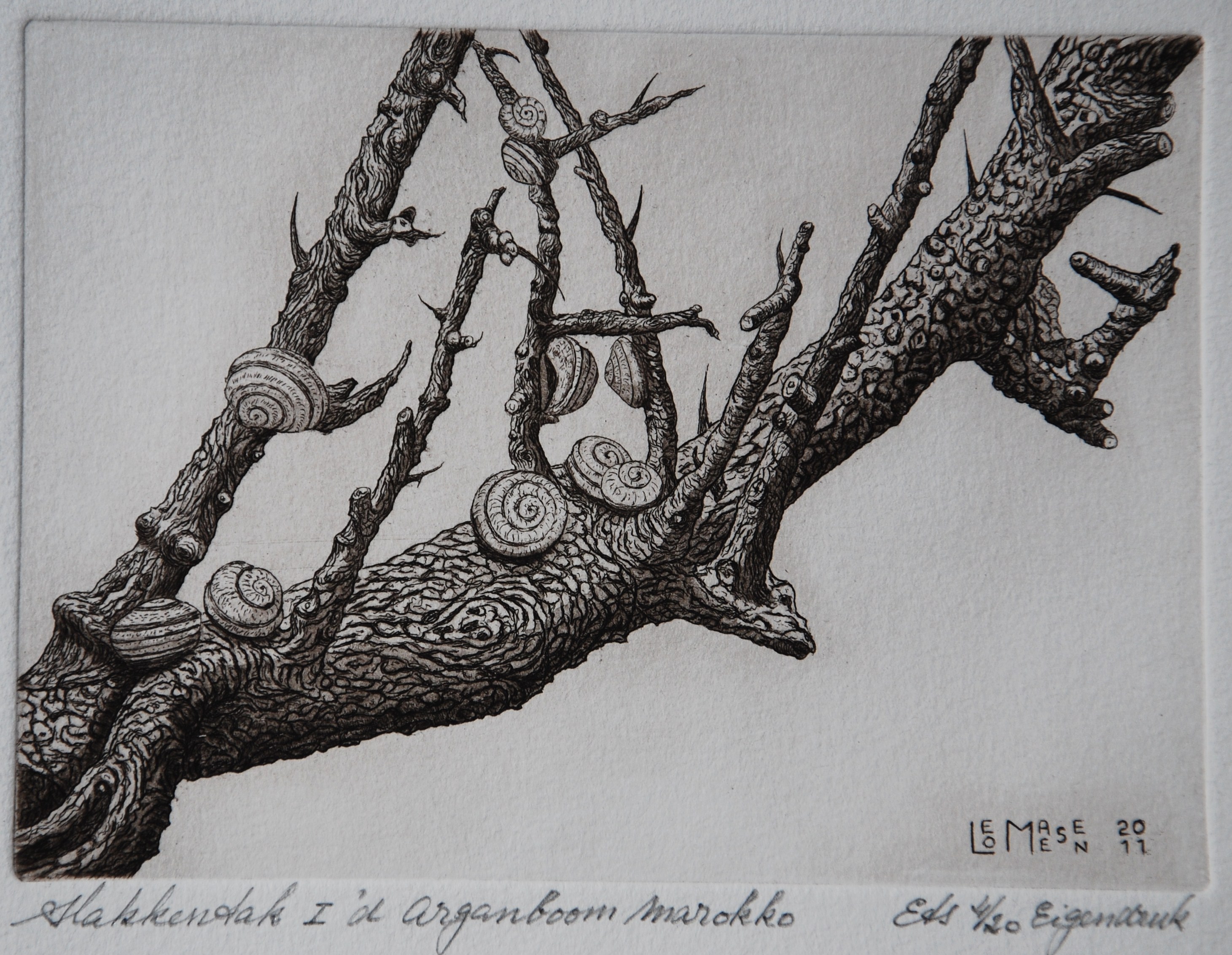 Slakkentak , tak van de Arganboom gevonden tijdens een expositie reis door Marokko Agadir en Essaouira