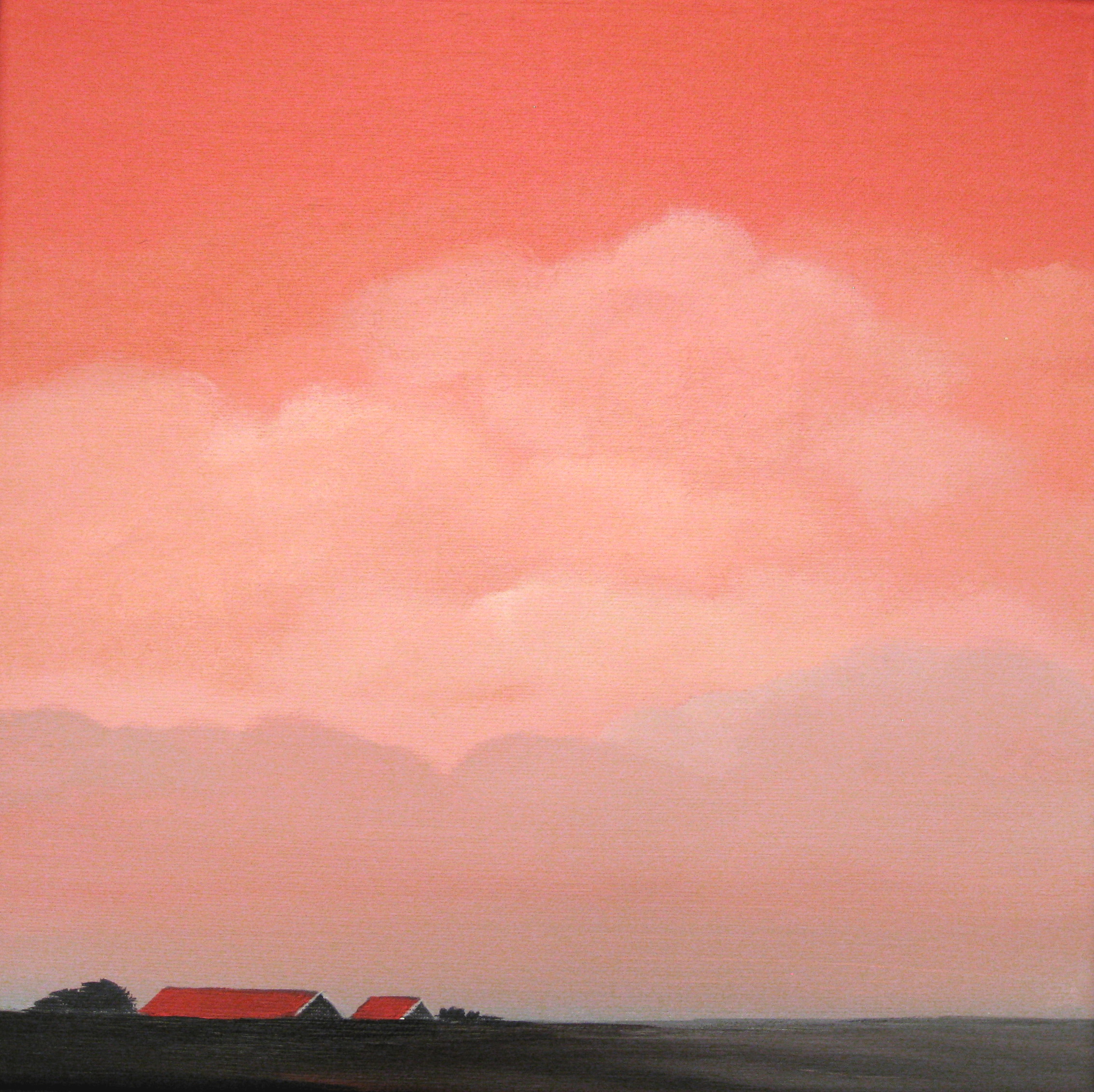 Schilderij Rood Landschap Wolken Polder Roze Boerderij Zeeuws