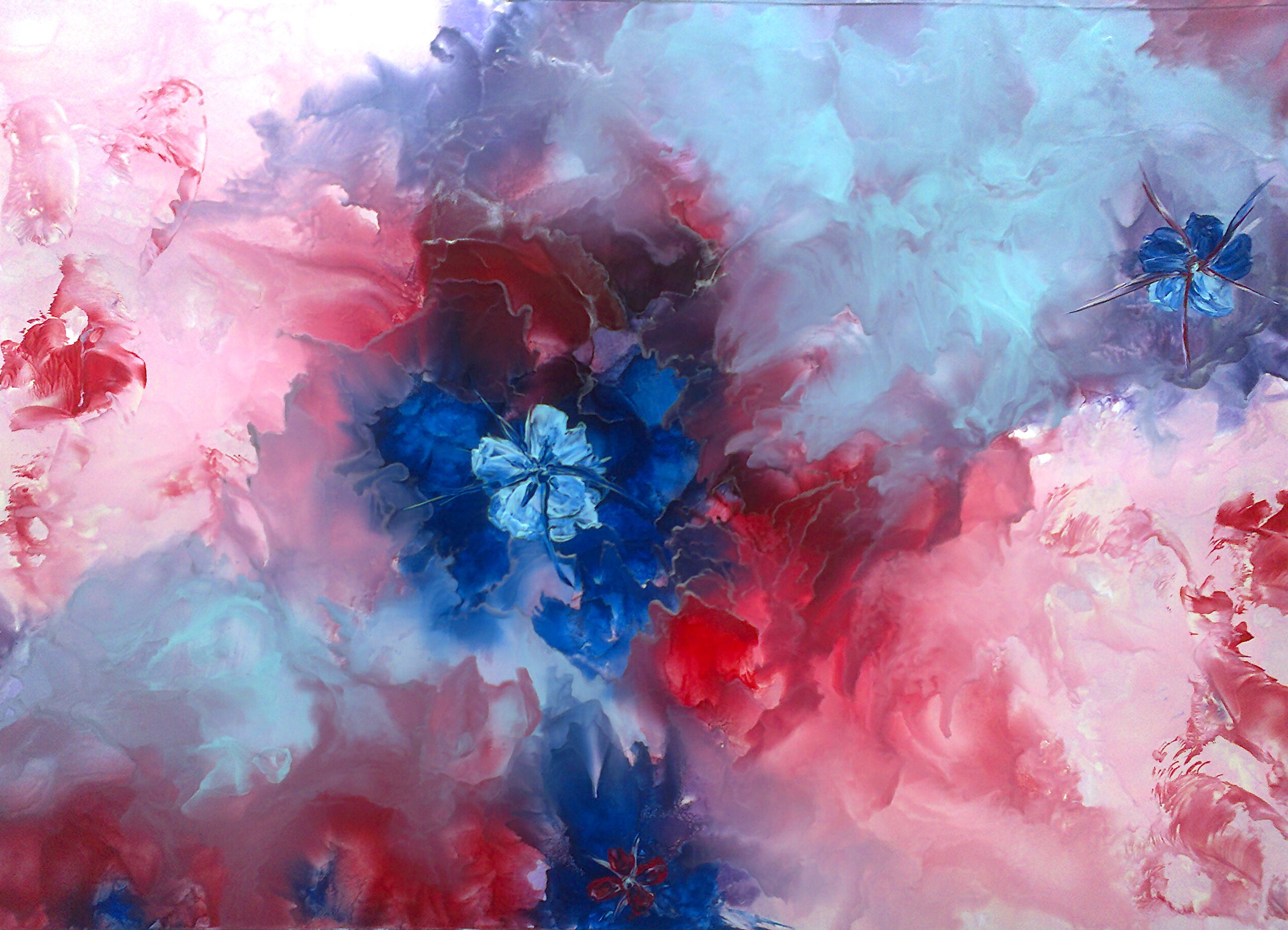 Rood Blauw Bloemen Art Kleuren Roze Hemel Encaustic Turkoois Viooltje Bijenwas