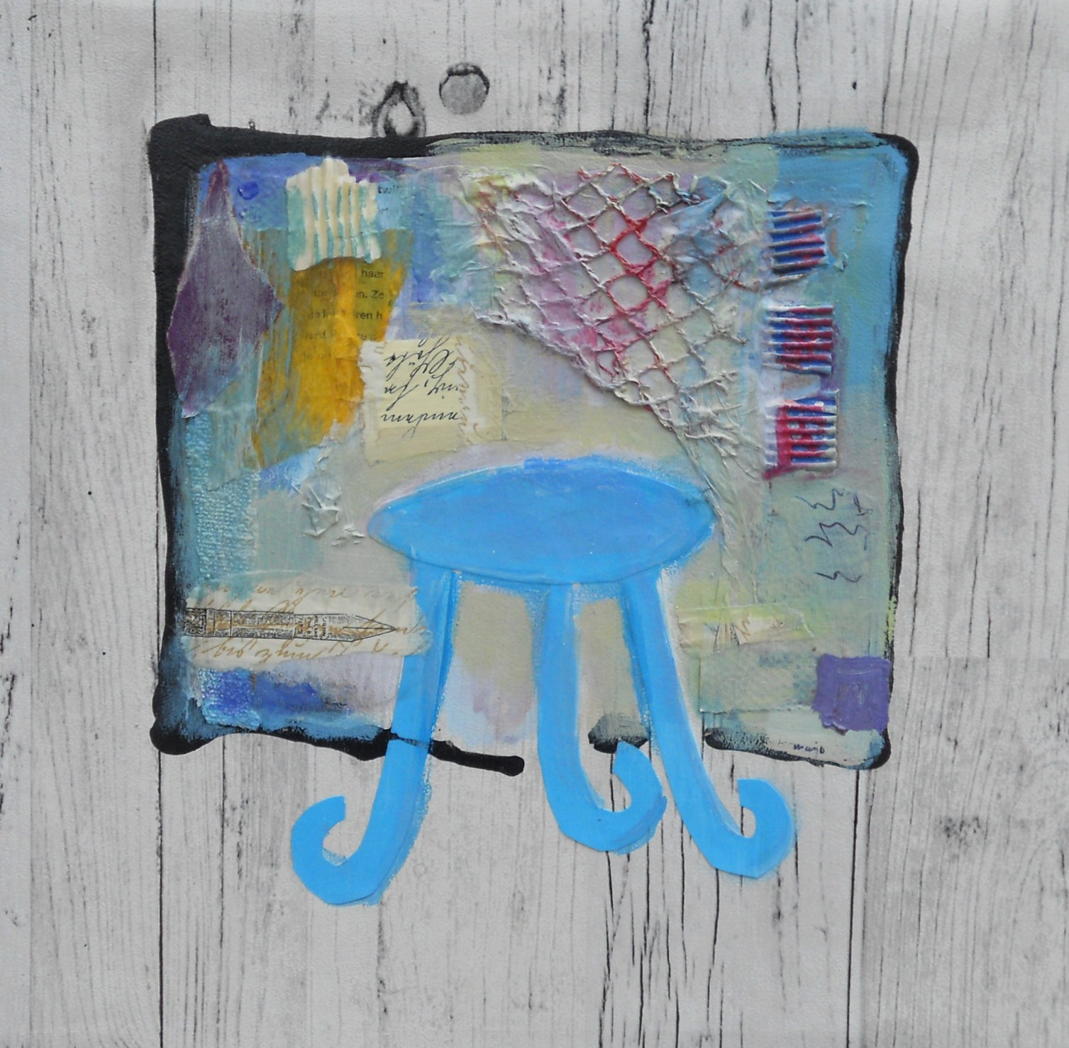 Blauw Blue Mixed Media Mini Tafel Cadeautje Table Kunstig Kunstige