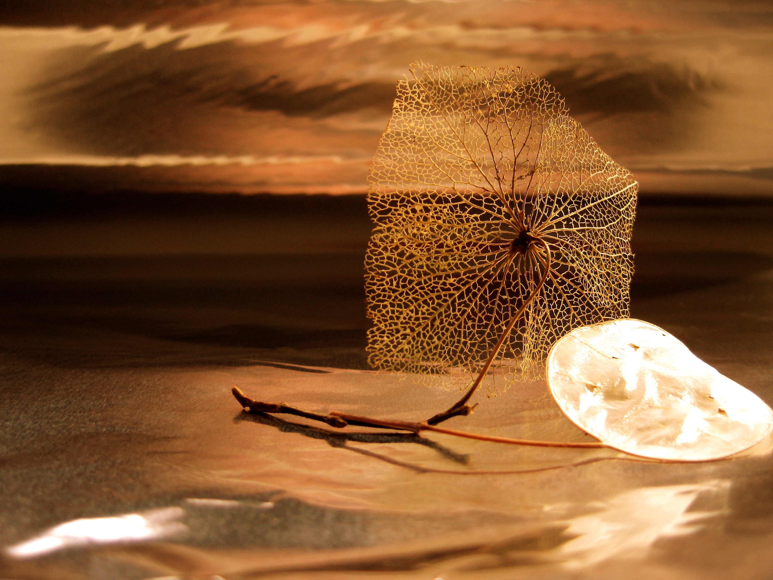 Skelet van een uitgebloeide Hortensia bloem