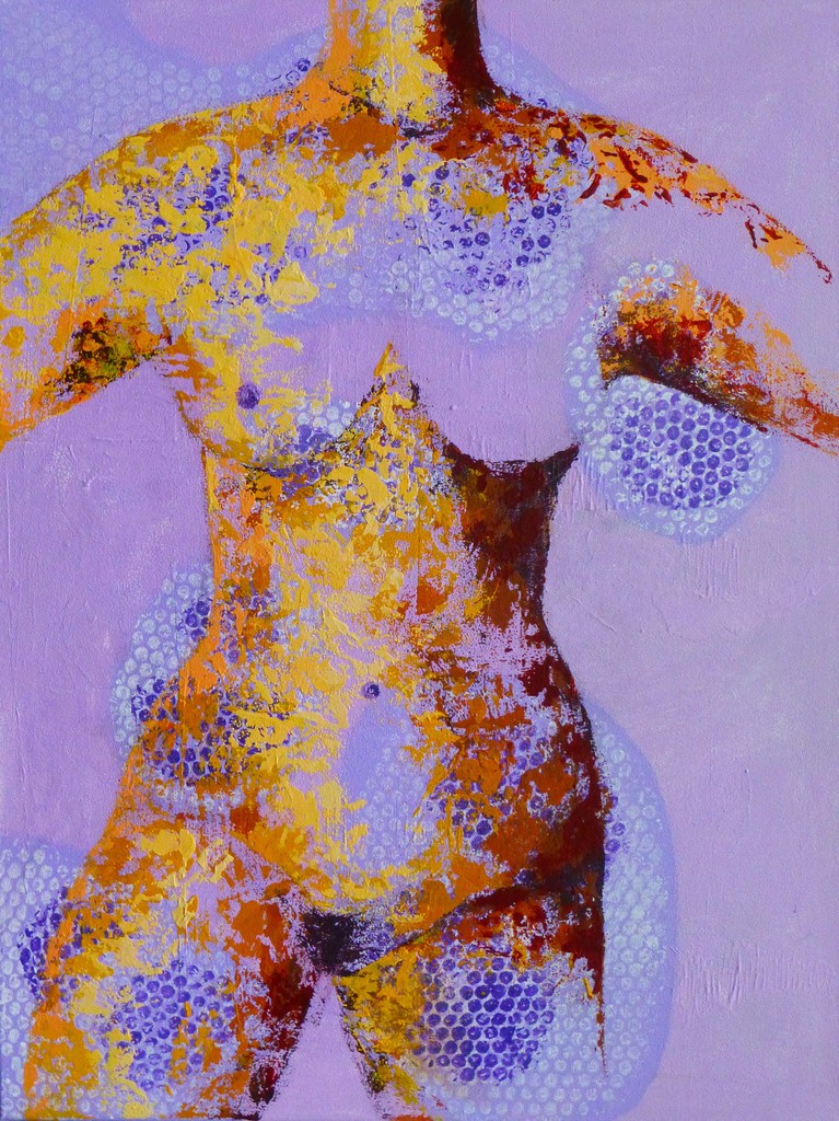 Diagnose borstkanker in maart 2014. Verwerkingskunst Na operatie, bestraling en chemo behoefte om mijn gevoel hieromtrent op het doek te zetten.