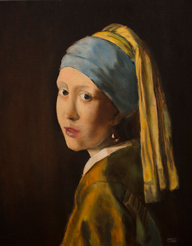 pearl (naar Vermeer) 80x60cm, oil on linen, 2014 see also: YT: http://youtu.be/wFzXOE--PK0