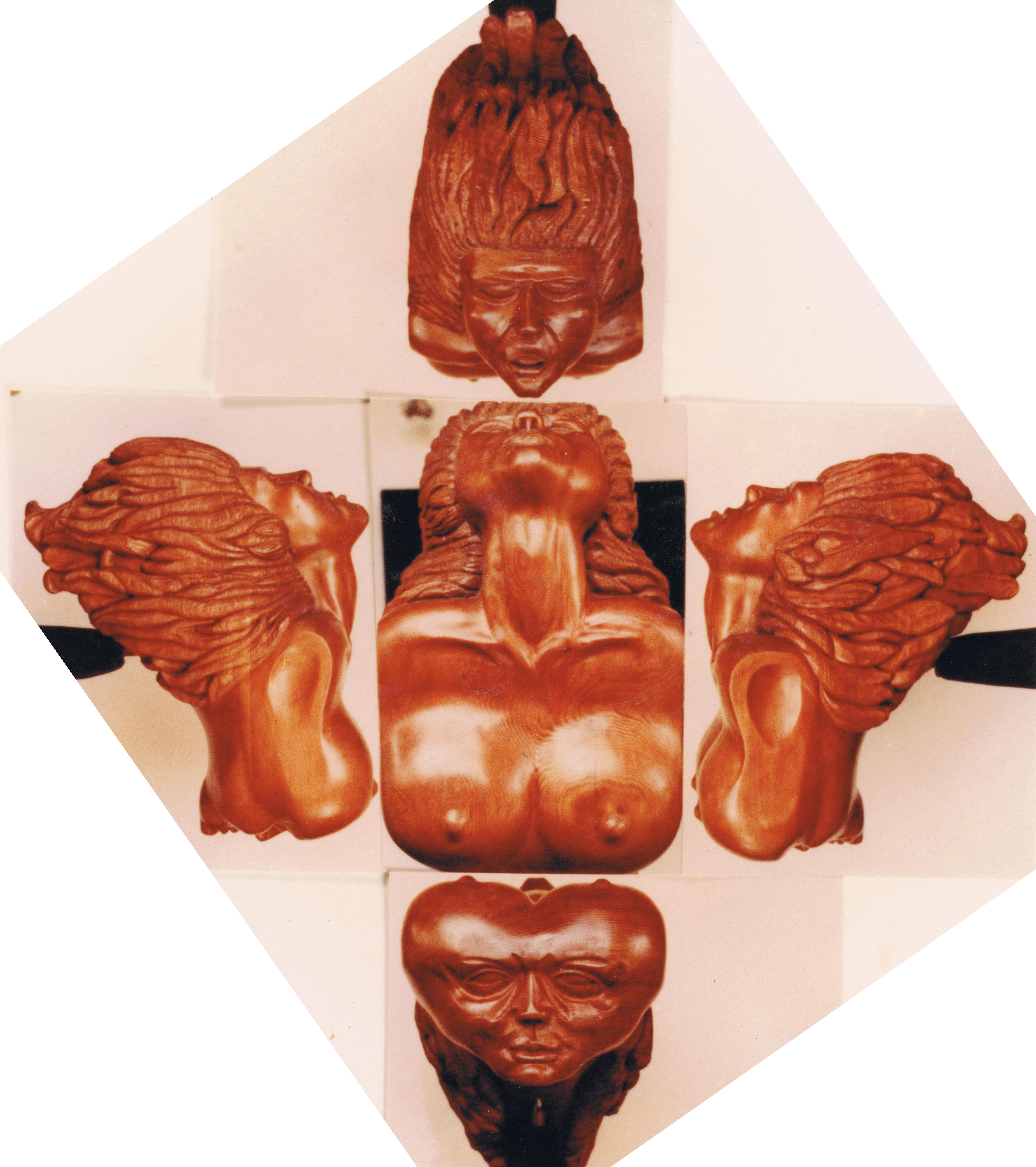 Houten beelden van Djef Blok, surrealistische en vol ironie, soms mild, soms bitter of lieftallig, maar altijd betekenisvol.