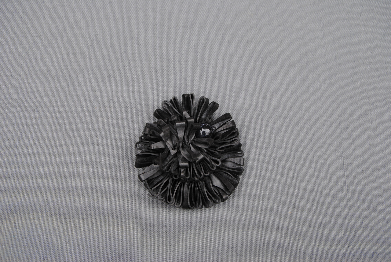 broche in de vorm van een bloem geheel uit rubber