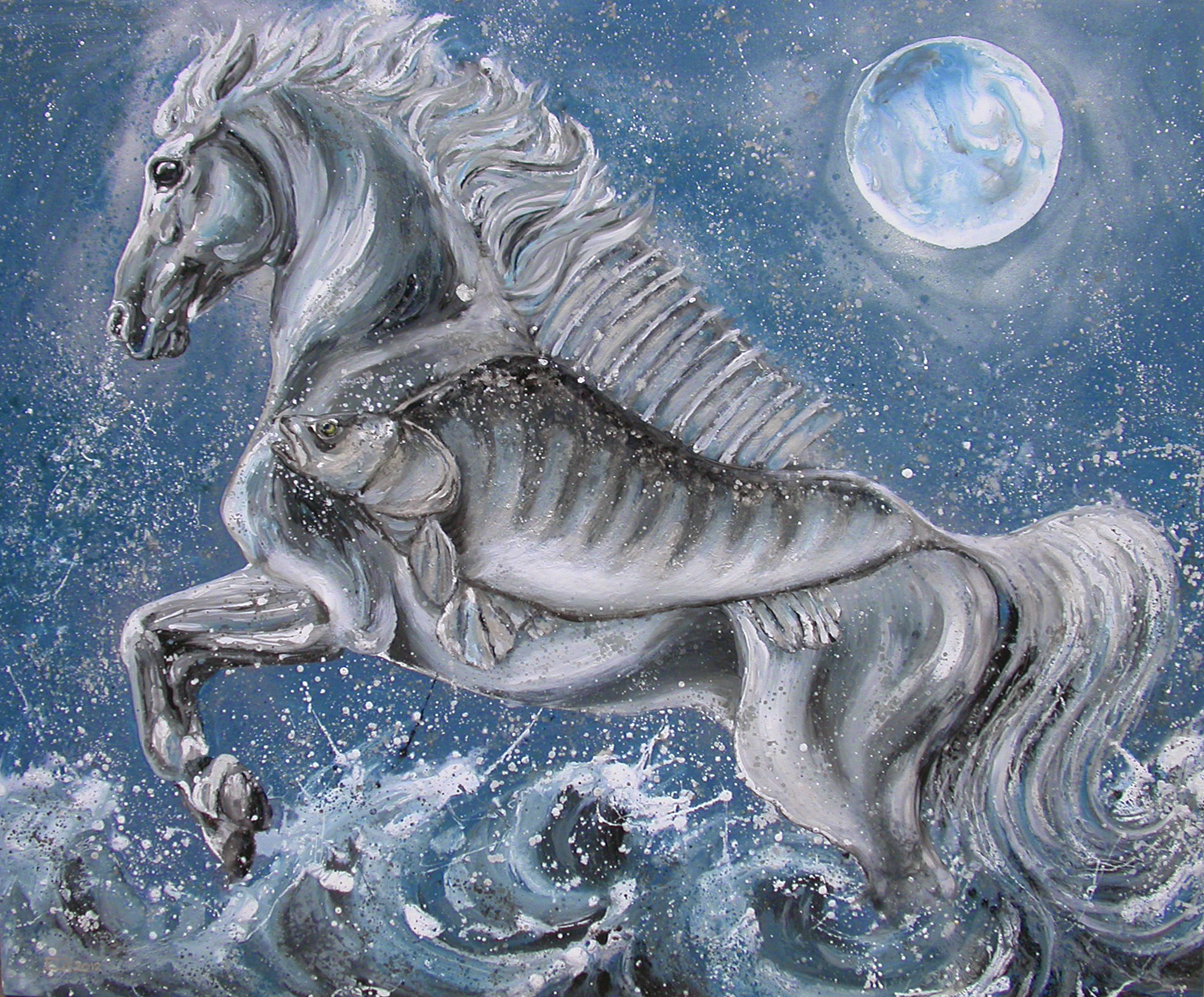 Paardvis in ruwe zee