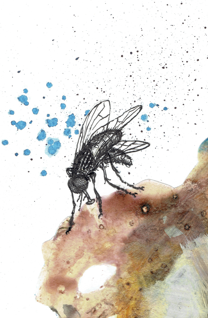Vlek en vlieg met inkt en ecoline op papier
