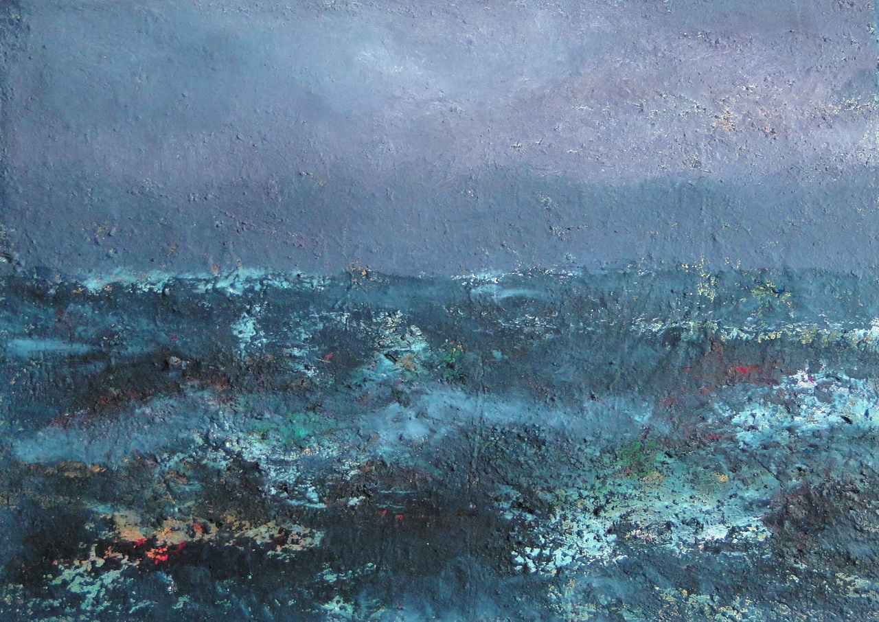 Zee Dreigend Lucht Schilderij Abstract Landschap Tempera Blauw Anneke Van Schie