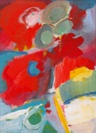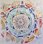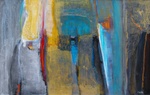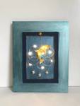 Schilderij is gemaakt met de encaustic-art techniek en de was is direct op het glas aangebracht.