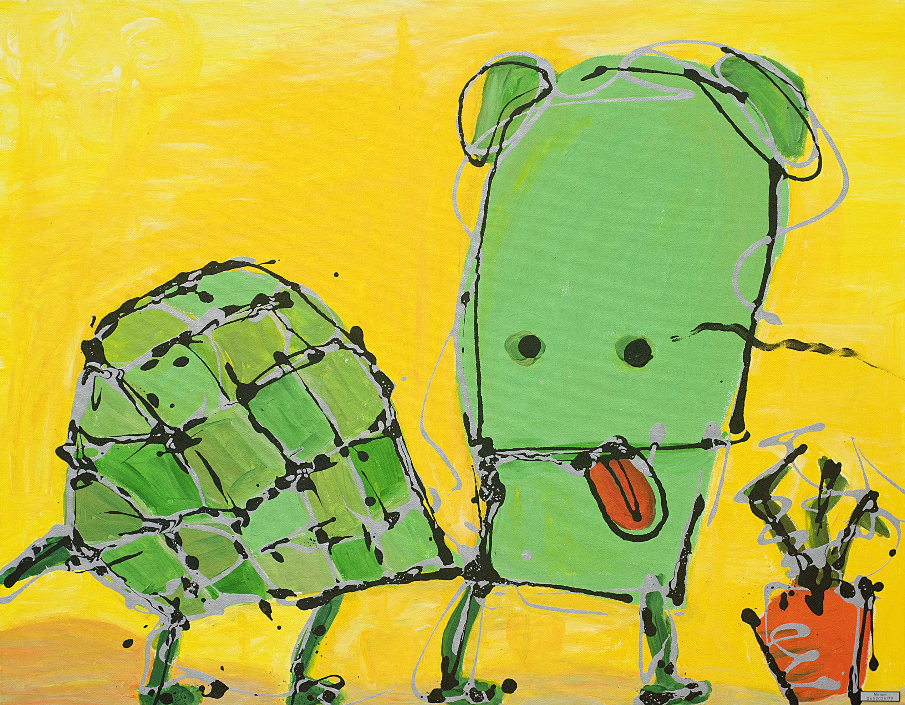 Schilderij van een schilpad, onderdeel van het 4 luik 'Crazy Animals'