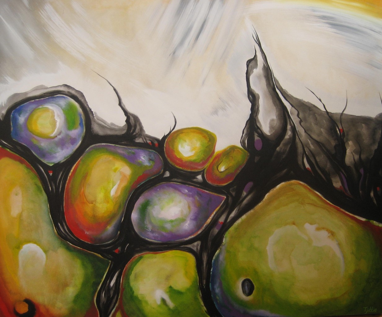Ik maak voornamelijk abstracte schilderijen met acrylverf.