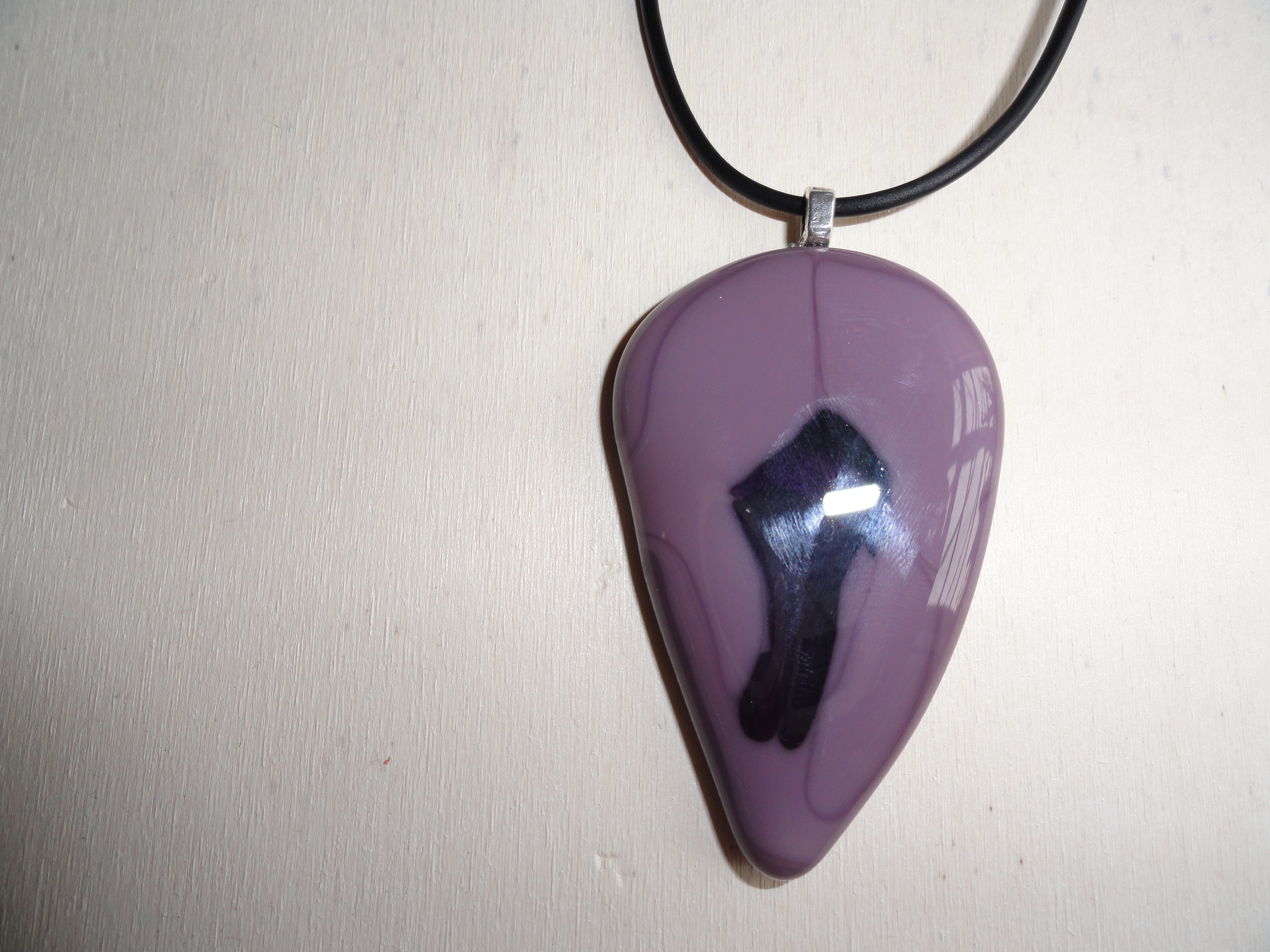 glas gefused, donker paars op een lichtere kleur paars in de vorm van een oog
