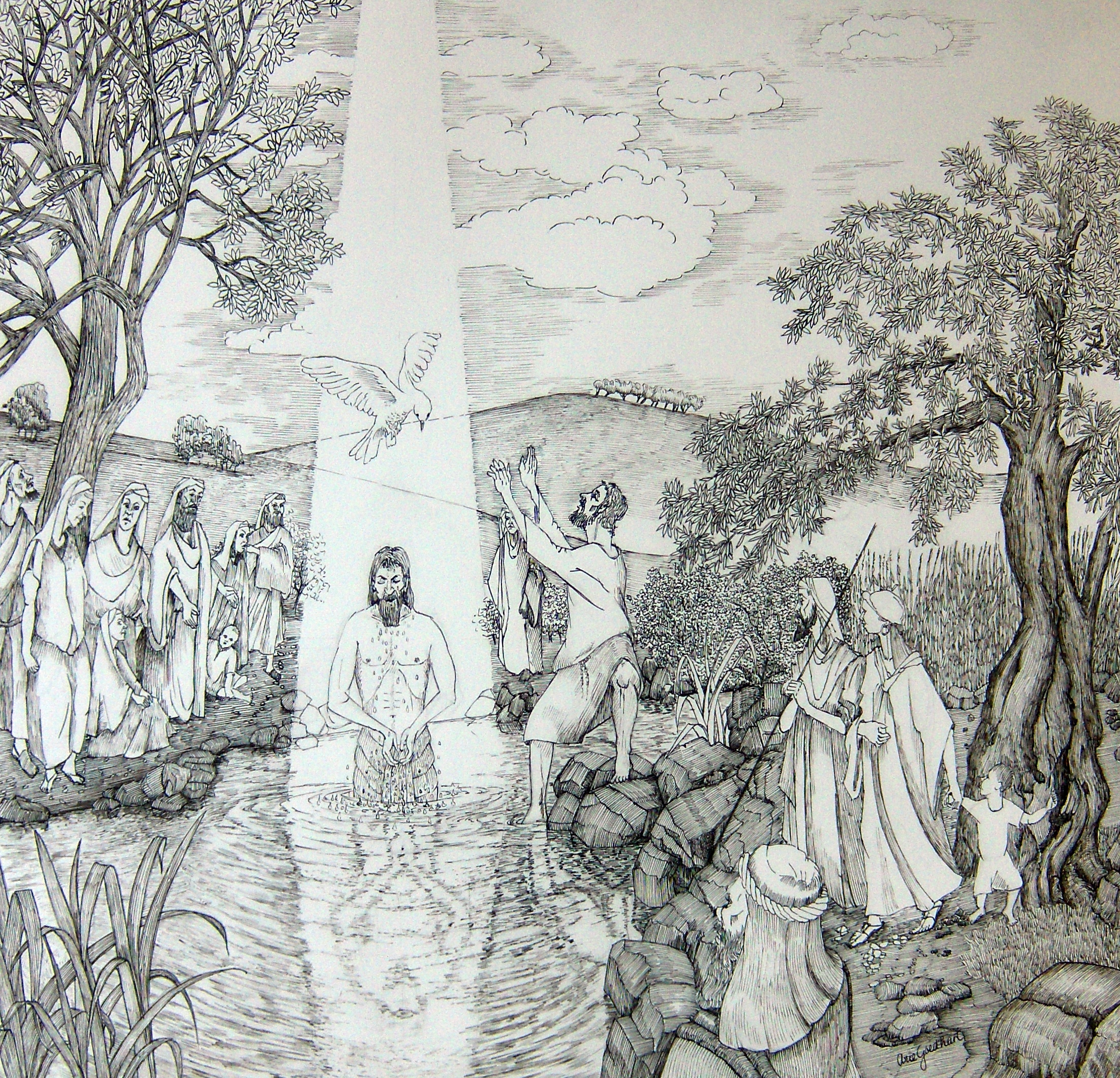 in serie bijbelse verhalen die ik in opdracht maakt is dit de 10 in de serie. Johannus doopt Jezus in de rivier de Jordaan.
