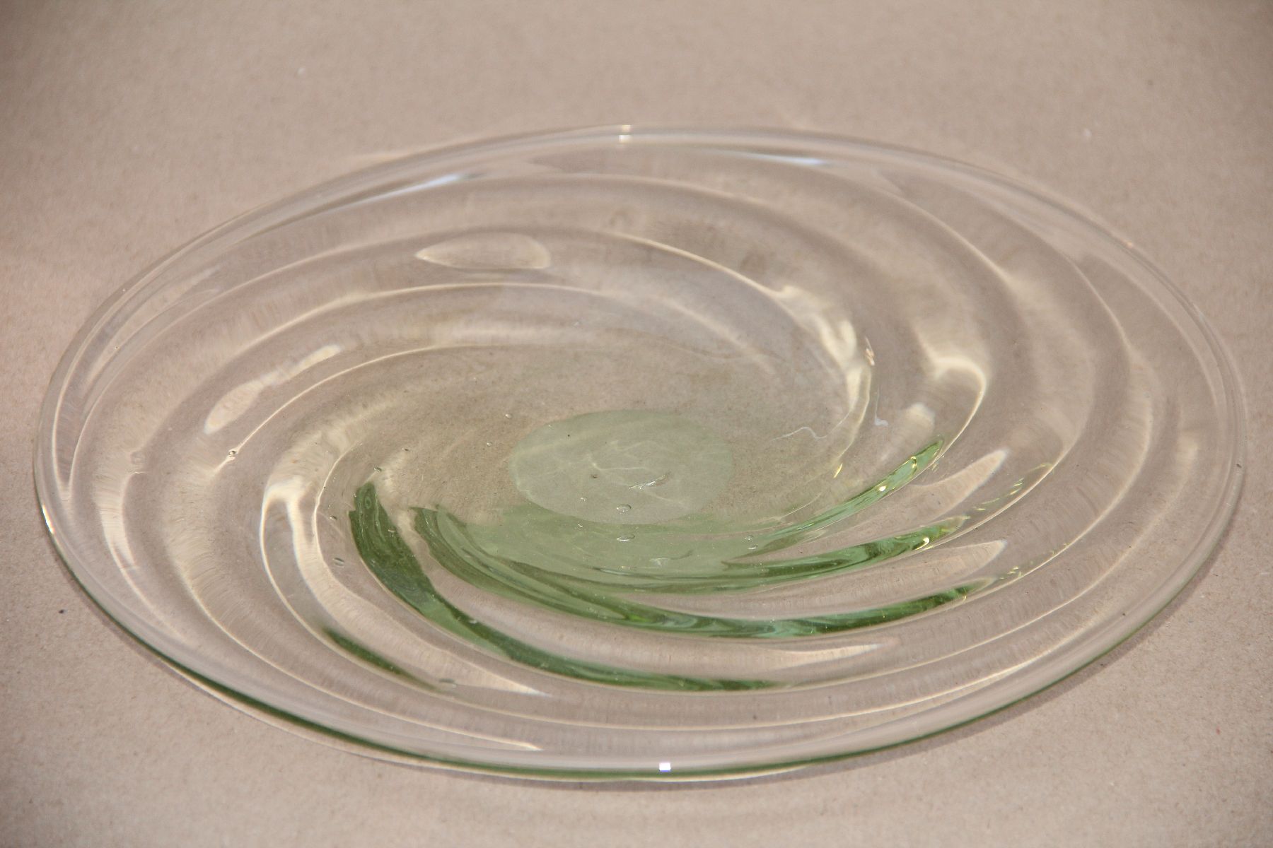 Mondgeblazen flessengroene schaal in optiek