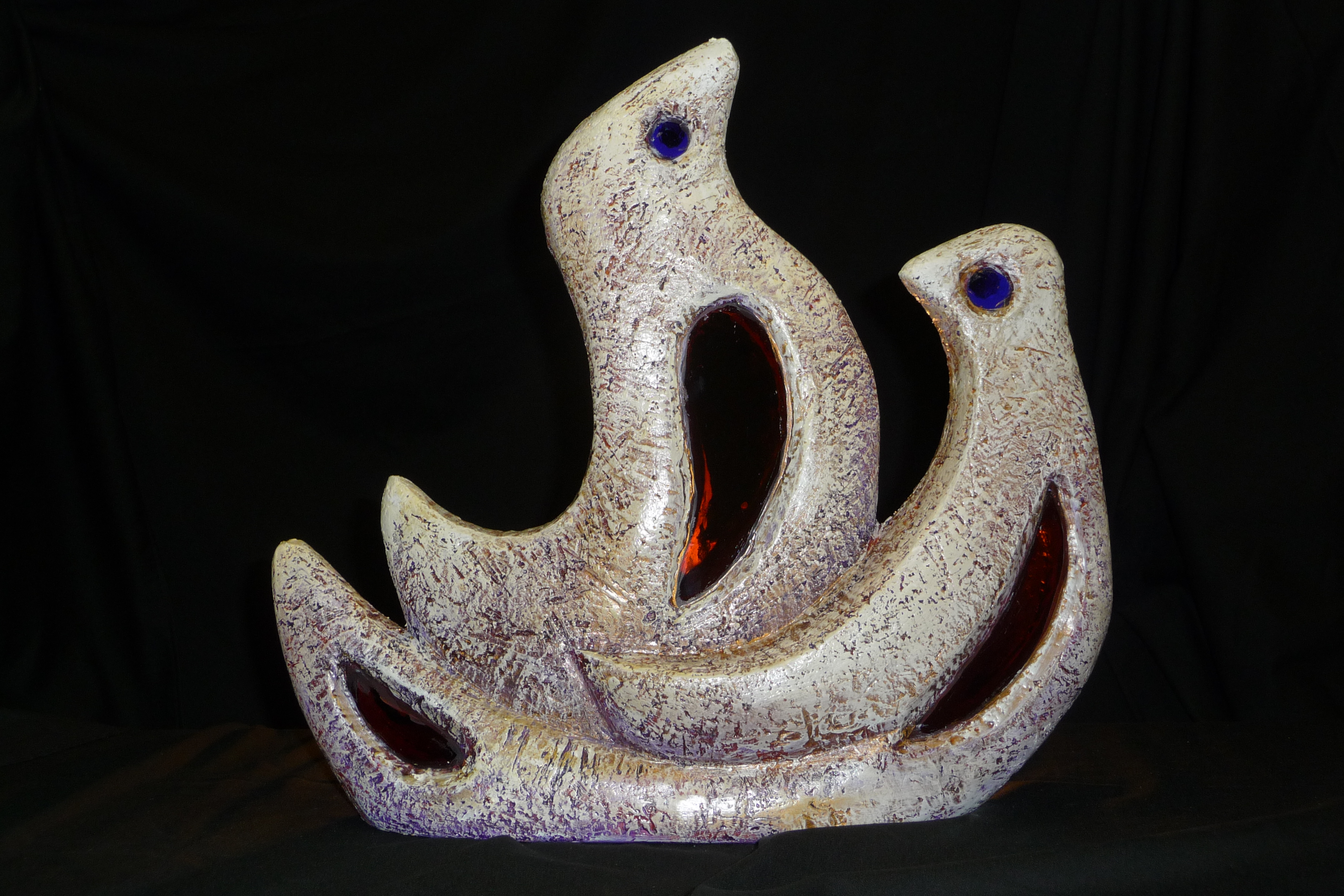 "2 vogels", object is voorzien van stukjes glas door Sjaak van Bakel.