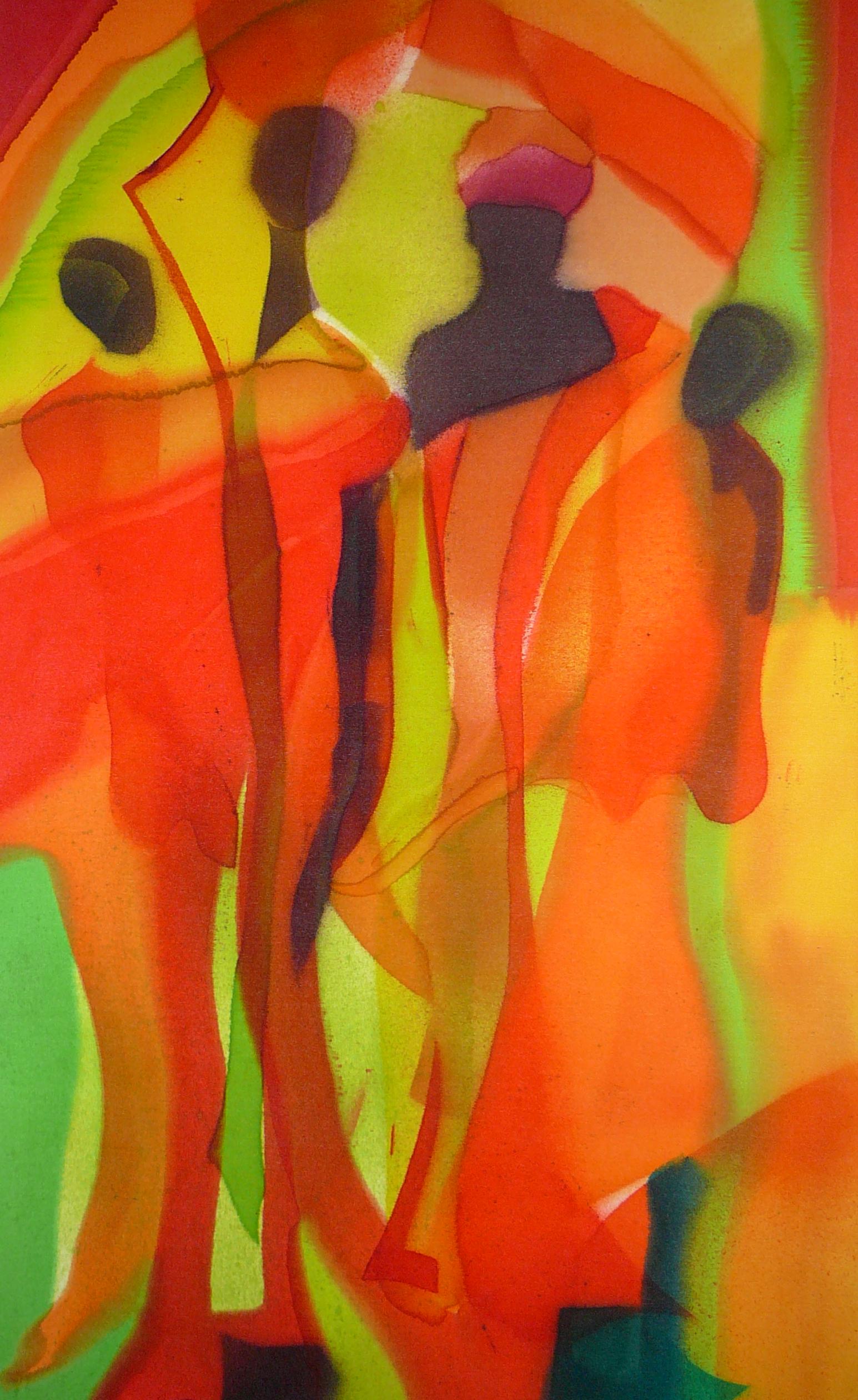 De Peul is de naam van een Afrikaanse stam, die leven in Mali. De vrouwen stralen door hun lengte en fiere houding trots uit. Het werk is gespoten en geschilderd op zijde.