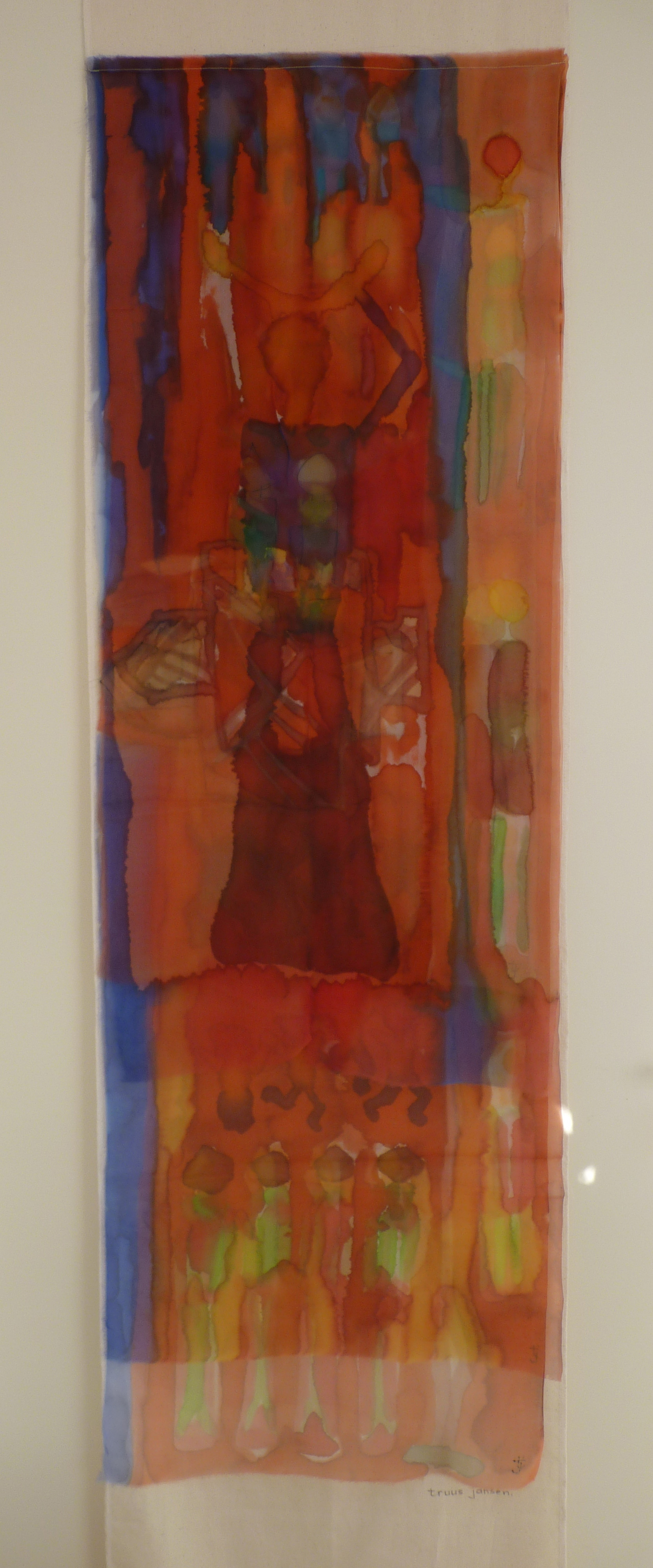 Ik ben Truus Jansen-Hollander, geboren in 1947 in Franeker en sinds 1974 woonachtig in Culemborg. Al sinds 1984 schilder ik op zijde. Ik vind zijde een prachtige stof, die de zijdeverf heel mooi in zich opneemt, waardoor mijn werken schitterend van kleur zijn. Ik haal mijn inspiratie uit de natuur, zowel dicht bij huis als uit de door mij bezochte vakantielanden. Met name de verschillende culturen zijn zeer imponerend. Ik heb altijd in het onderwijs gewerkt en speciale bevoegdheden voor ´textiele werkvormen´ en ´handvaardigheid´ gehaald. Ik was dan ook verantwoordelijk voor alle handvaardigheidslessen voor de groepen 3 t/m 8 van een basisschool. Ook in het Voortgezet Onderwijs heb ik op dit gebied les gegeven. Wat betreft het 'zijdeschilderen' ben ik op het volgen van een paar cursu