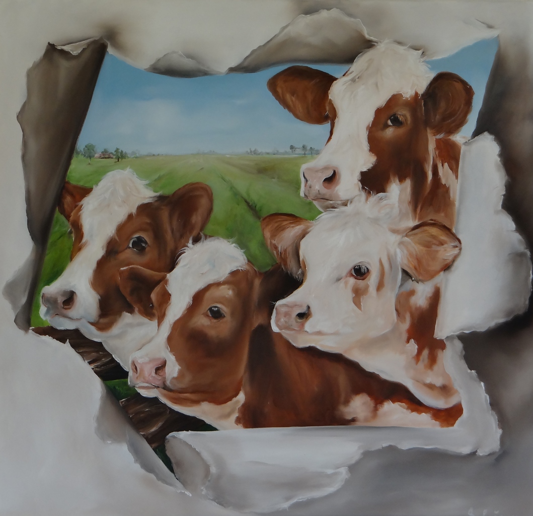Tromp L'oeuil Koeien Cows Vaches Landschap Koeienkunst Dierenportret Holland Sylvia Heeren