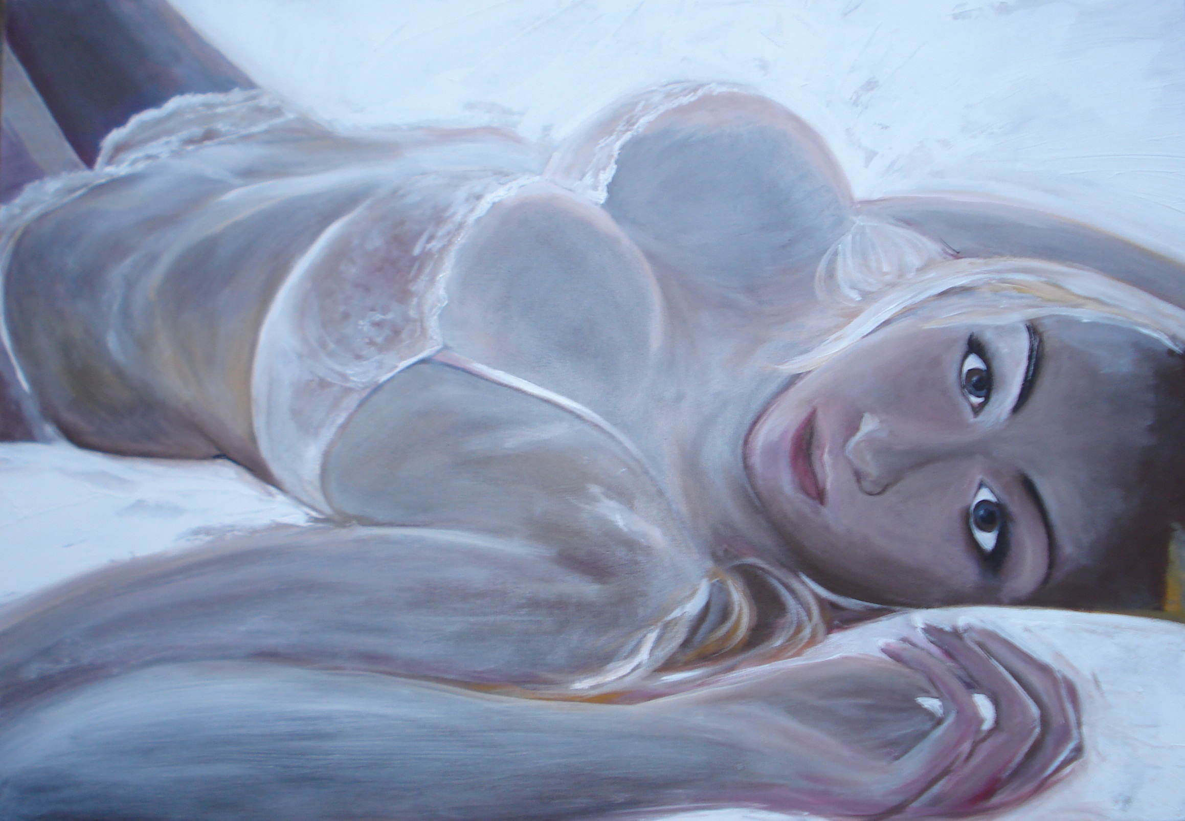 Wit Vrouw Naakt Bruin Gezicht Ogen Borsten Face Liggend Lingerie Ondergoed