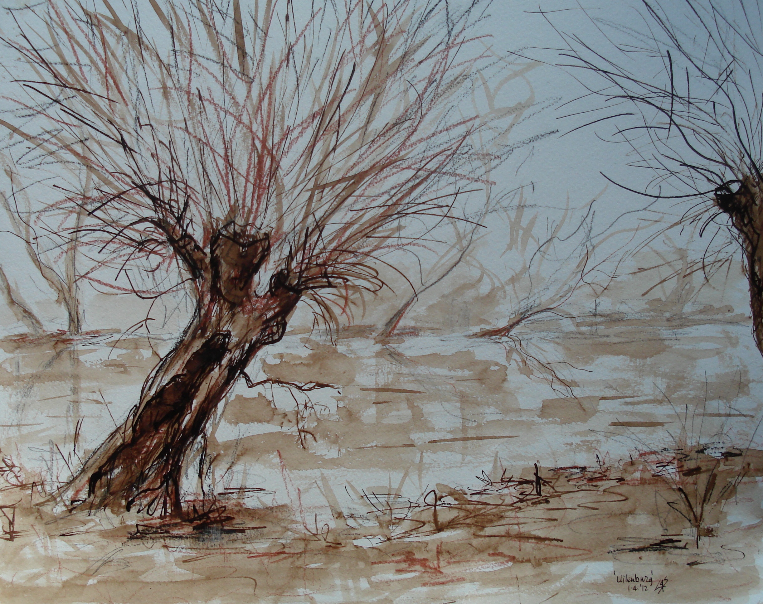 Landscape Lente Spring Printemps Campagne Scenery Frühling Sepia Drawingink Ausziehtusche Tekeninkt