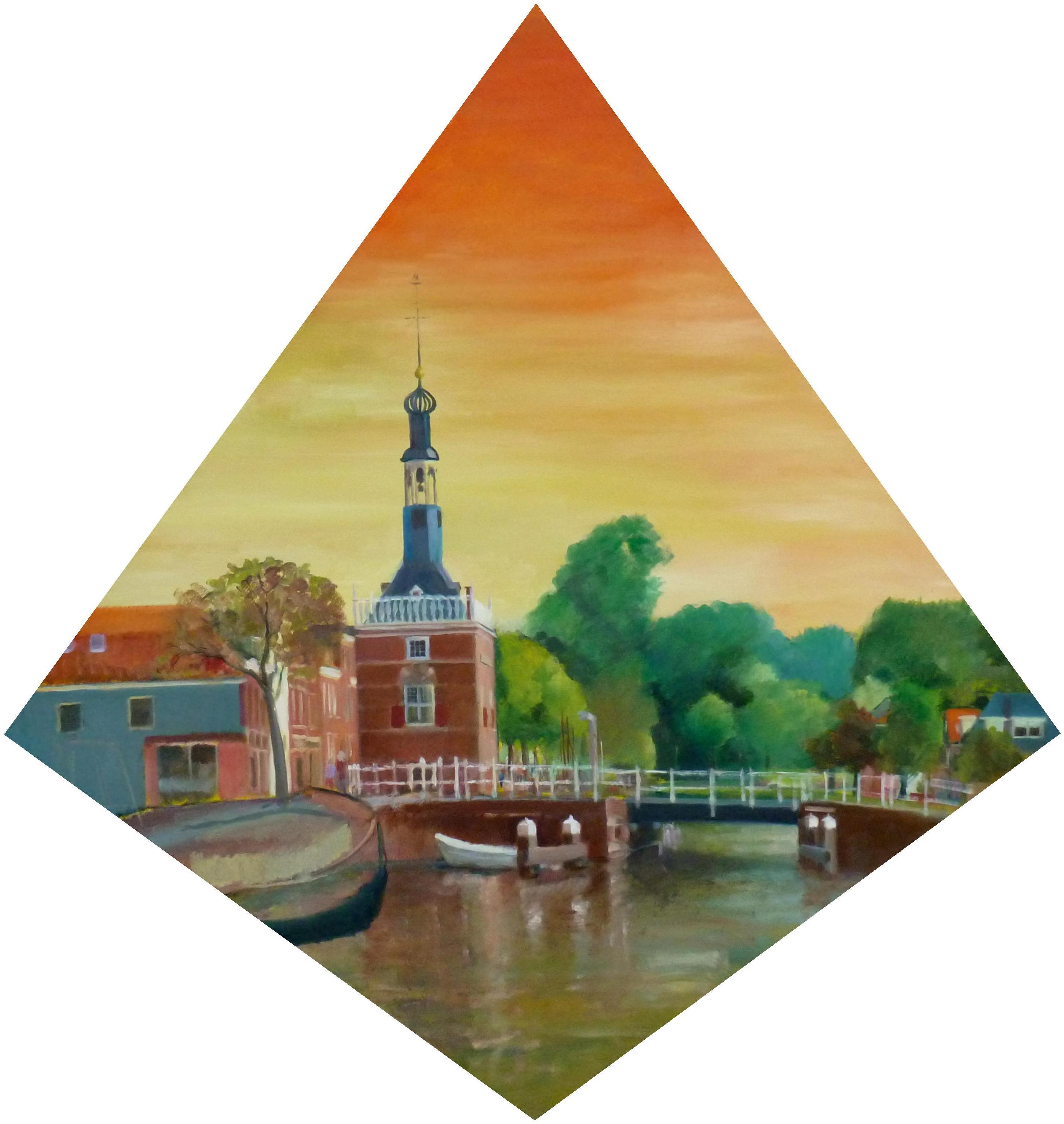 Accijnstoren Alkmaar 2010 op Hoekse Drup in olieverf op linnen