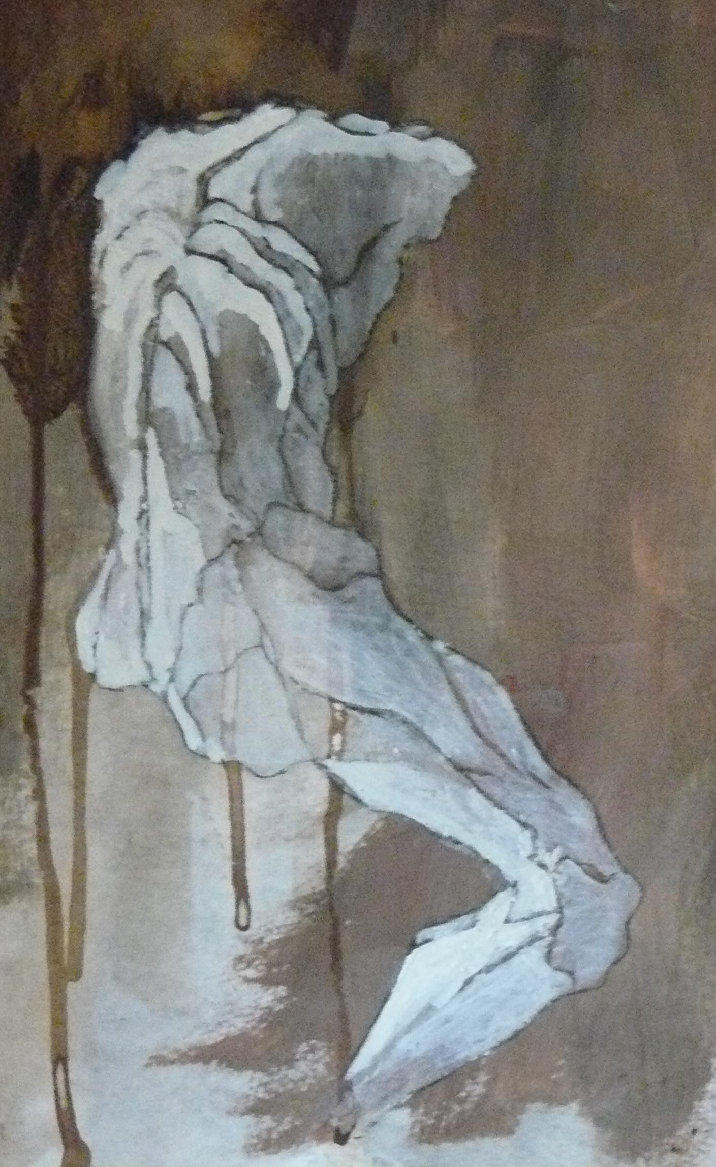 Ets Verf Blauw Man Rug Wit Zwart Naakt Been