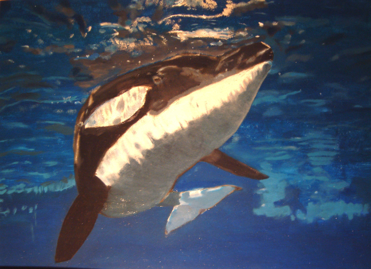 Helemaal geïnspireerd door het zwemmen met dolfijnen in Hawaii en de locale kunstenaars van Kona, maak ik mijn eerste schilderij.