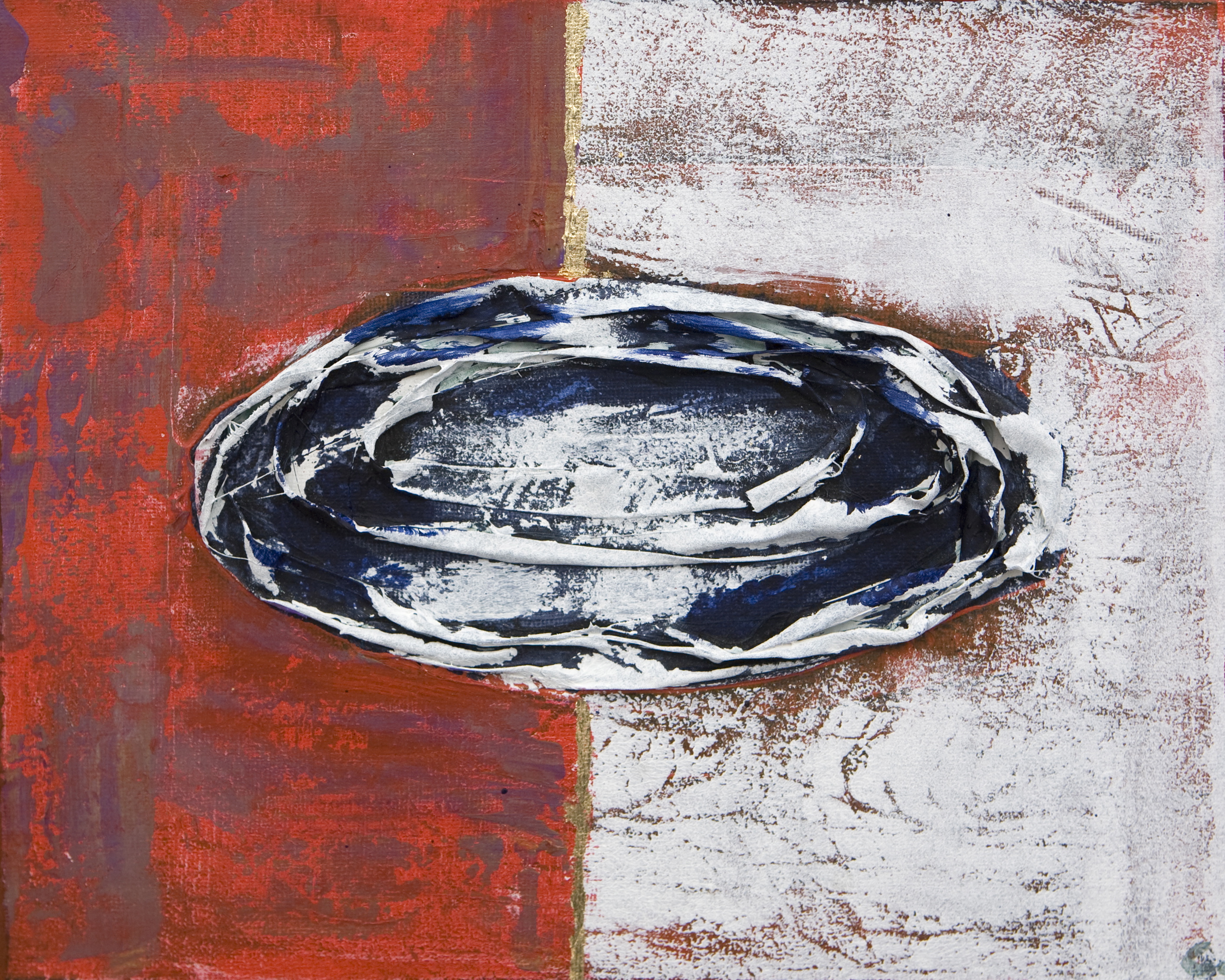 "THE THIN LINE" Deel 2 van tweeluik. Acryl, goudfolie en gesso-doek op linnen. Ingelijst in licht-beuken baklijst. Prijs per stuk.